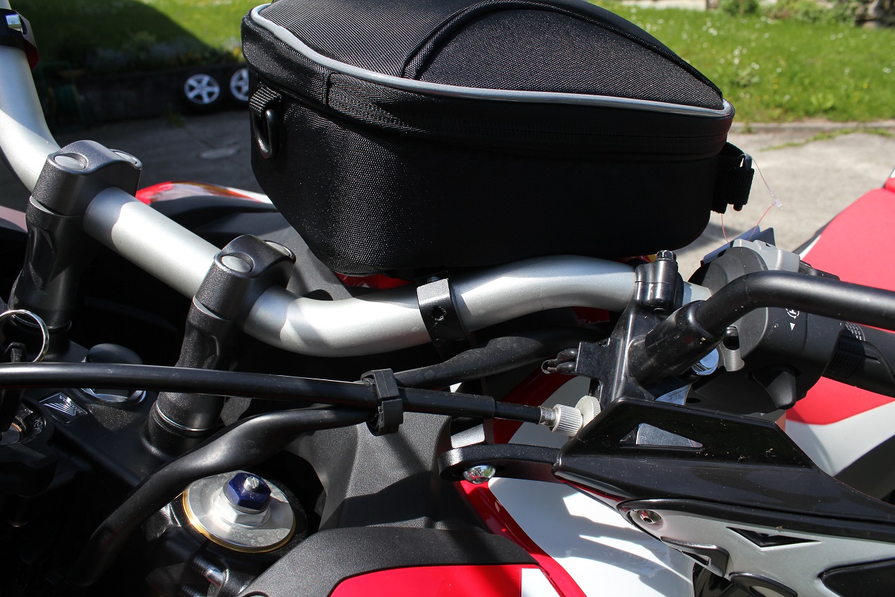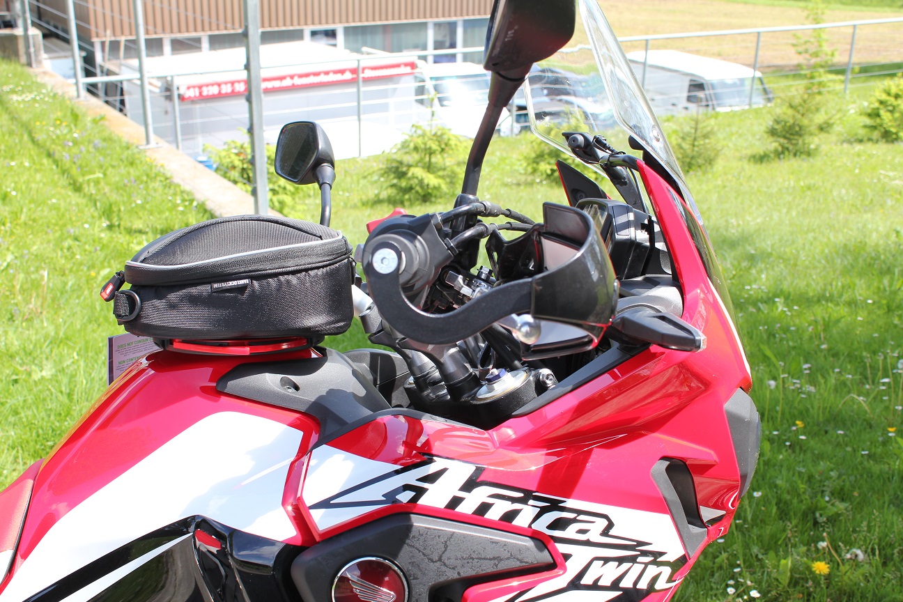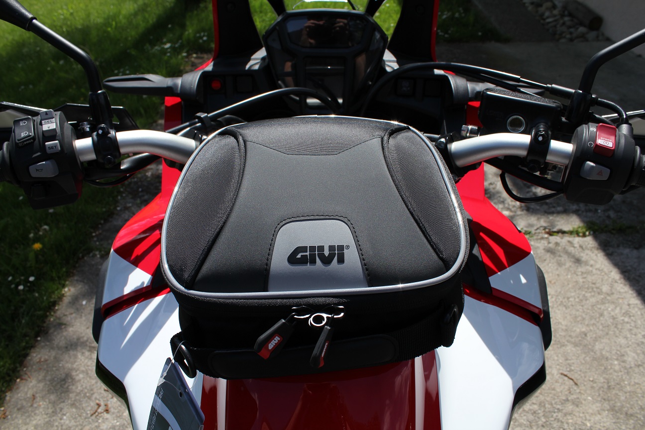 Ich habe mir nun den GIVI XS319 mit einem Tankring einer Honda VFR 800 geholt. Bei vollem Lenkeinschlag kommen die Halter der Acerbis Handschützer ganz wenig in Kontakt, jedoch ist das kein Problem. Ohne die Handschützer würde der genau passen. Der ist zwar nur 3l, jedoch passt eine DSLR mit Stativ rein.