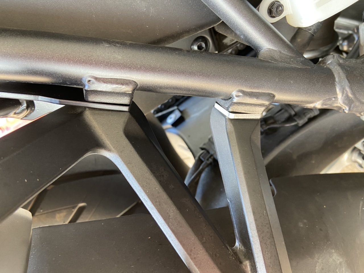 Ich habe letztens den Touratech Kofferträger bestellt und montiert. Rechte Seite hat alles super funktioniert, auf der linken Seite hat das Loch an der Fußrastenaufnahme nicht ganz gepasst und musste um circa 1 mm aufgeschliffen werden.