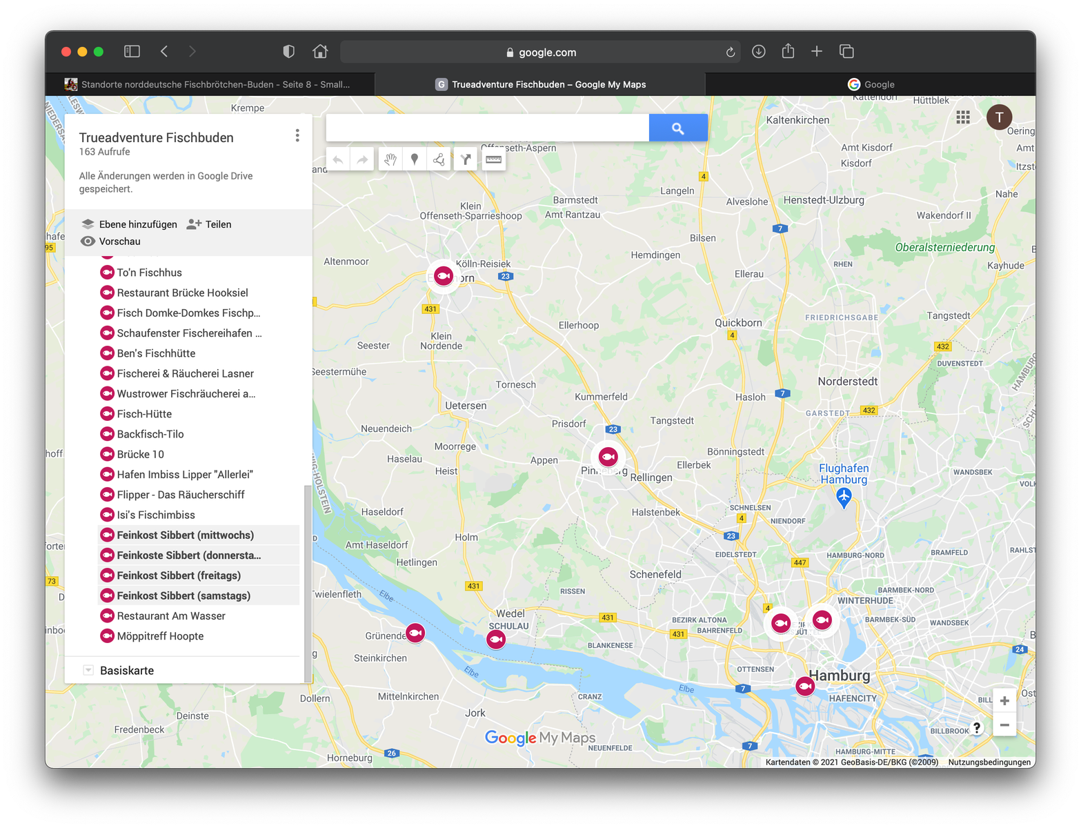Was aber mache ich mit seinem Vorschlag zu Feinkost Sibbert? Die stehen auf vier verschiedenen Wochenmärkten für je einen Tag in der Woche. Als Tourziel ist das nur dann geeignet, wenn man die Standorte und -zeiten genau kennt. Das wird in einer Wegpunktdatei schwierig.