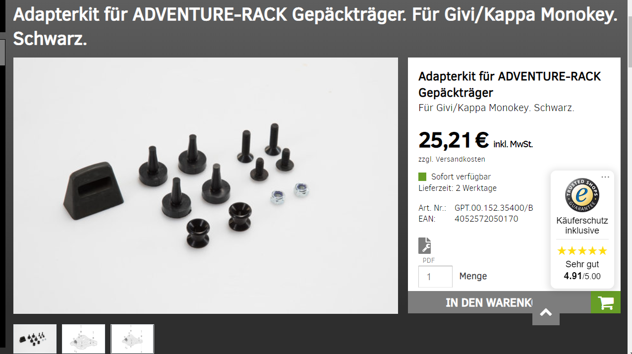 Danke, freue mich auf dich Bilder, die Lösung ist super, da recht günstig und ich muss das "Vorderrad" nicht ausbauen.![]()
