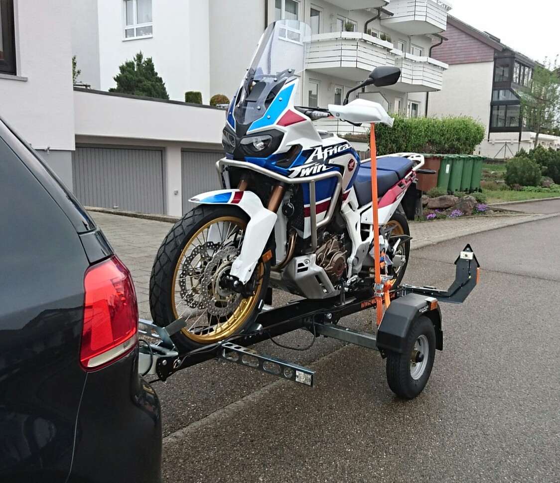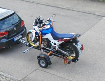Zum Festzurren würde ich zwei Gurte V-förmig vom V-Rad zur Hä-Achse und von H-Rad zur Hä-Achse zurren.
