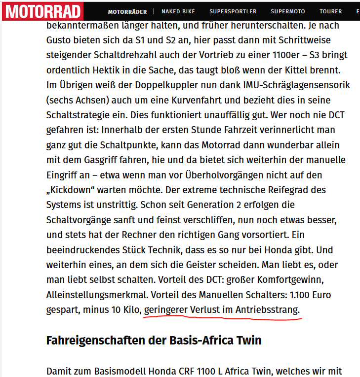 Diesen "Hauch" weniger Leistung als die "Schalter-AT" macht die DCT-Version durch NAHTLOSEN Kraftfluß wett.