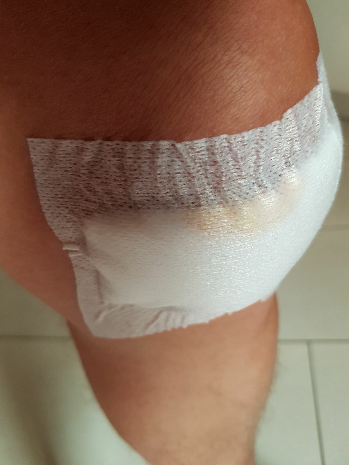 Nix davon war mir bekannt. Langer Rede kurzer Sinn: ein Draht hatte sich unterhalb der Patella ins Gelenk geschossen, ohne dass ich es sofort gemerkt habe.