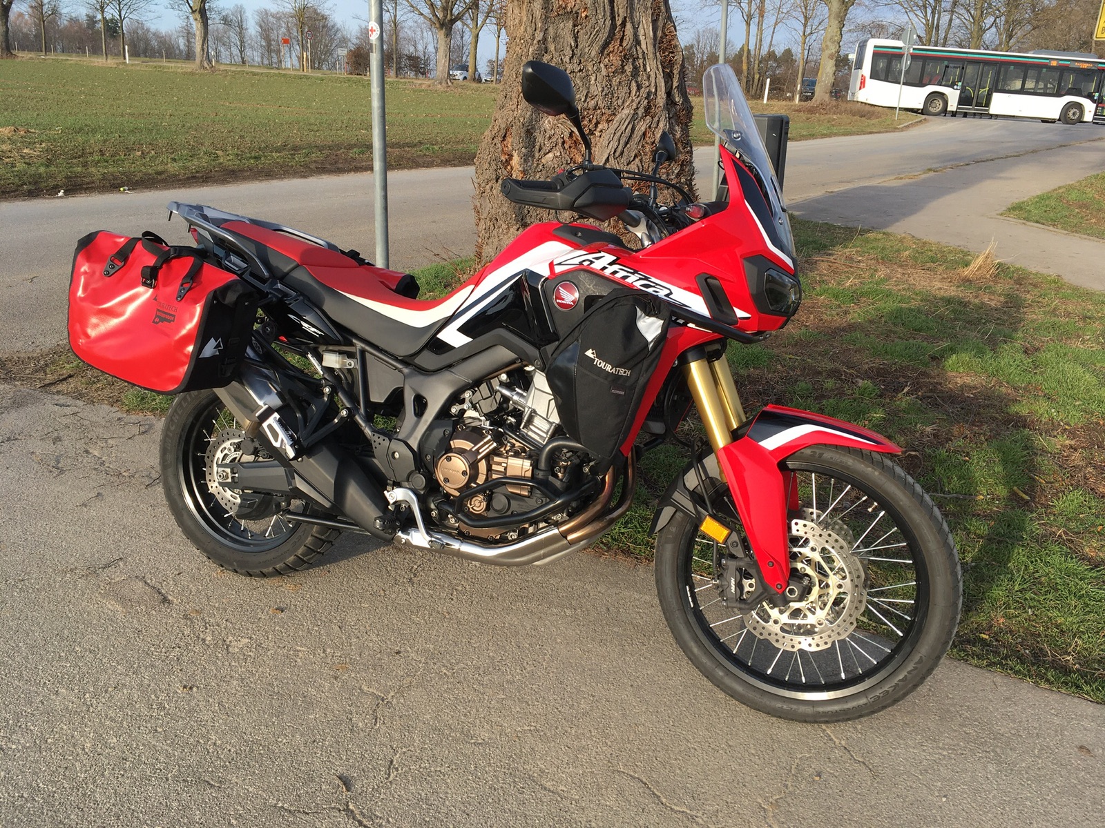 Eine Frage hätte ich noch. Hat jemand die rote Africa Twin mit den roten Taschen? Oder schon mal gesehen? Passt das Rot zusammen? Oder lieber schwarz nehmen?Keine Ahnung ,ob das noch interessant ist. Ja ich hab die roten an der roten AT dran, das ist richtig passend
