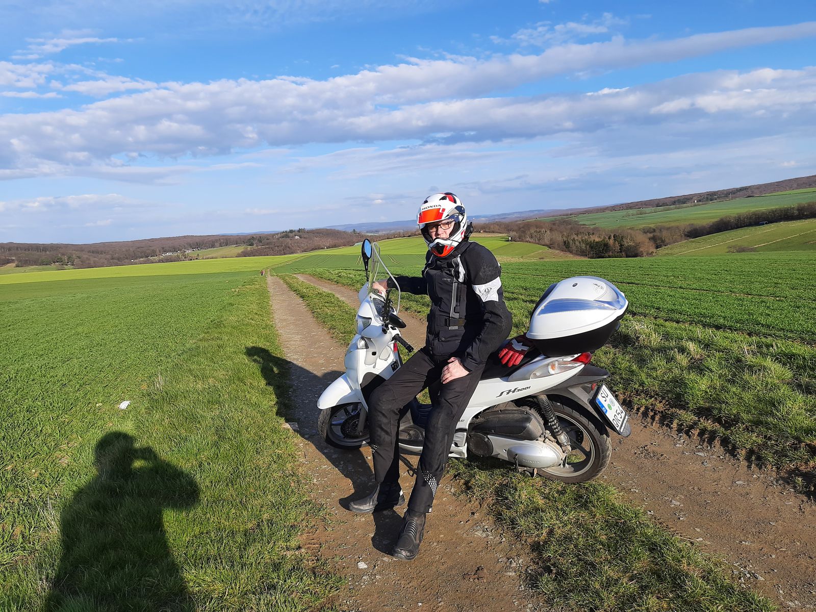 Lustig wird es bei mir immer wenn ich in meinem Motorradoutfit mit meinem SH 300 zur Garage fahre wo mein Tricolörchen steht.