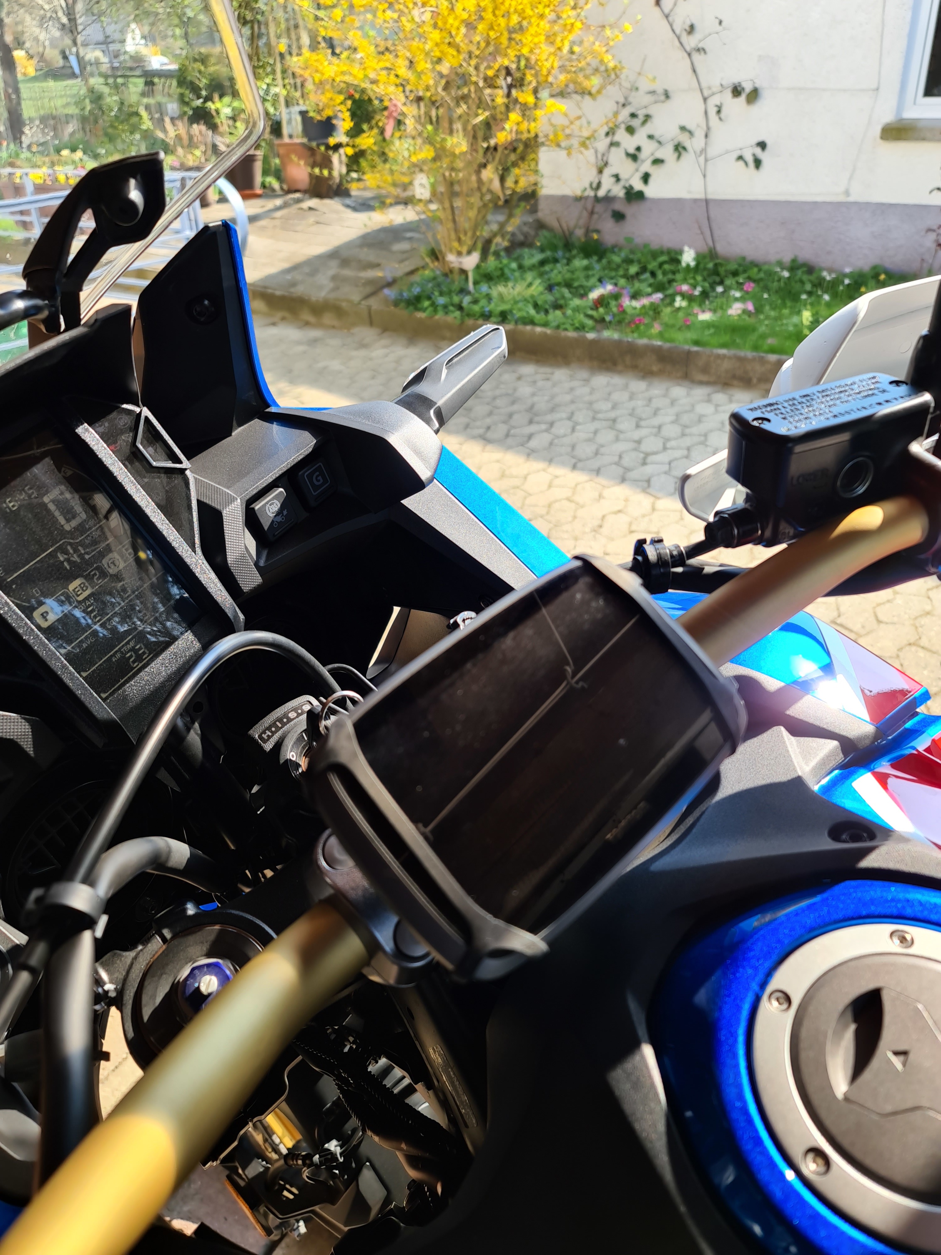 Im Februar als ich bei Touratech war, habe ich mir die USB Steckdose (s. Bild) einbauen lassen. Damals sagte ich ausdrücklich eine Steckdose