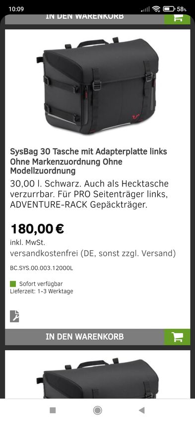 Das Motea Kofferset habe ich auch zurück geschickt und habe mich, auch wenn fast doppelter Kaufpreis, für die SysBag 30 von SW-Motech entschieden.