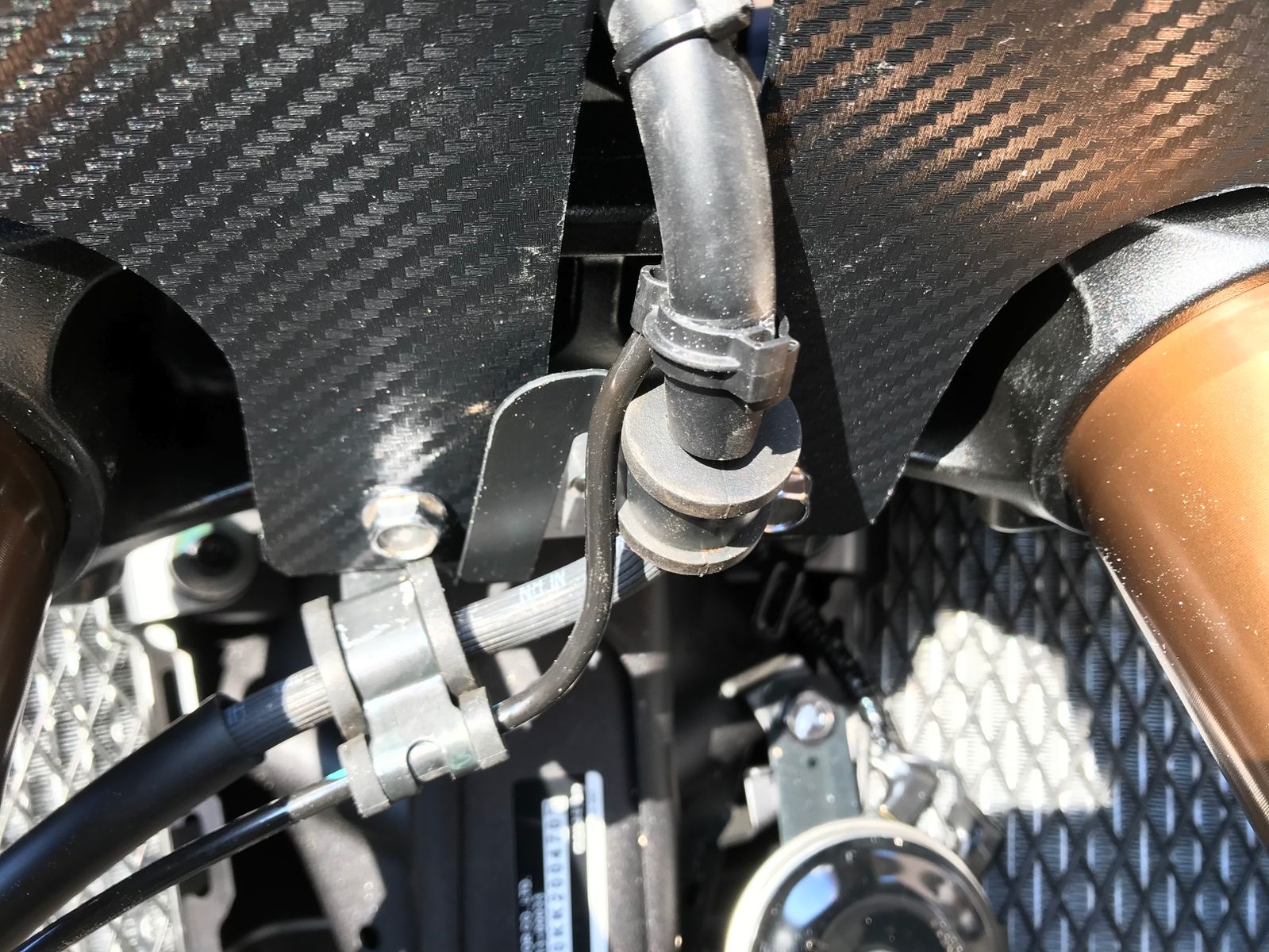 - Mit dem seitlich geschnittenen M6 wird der Bremsschlauch in die Mitte versetzt