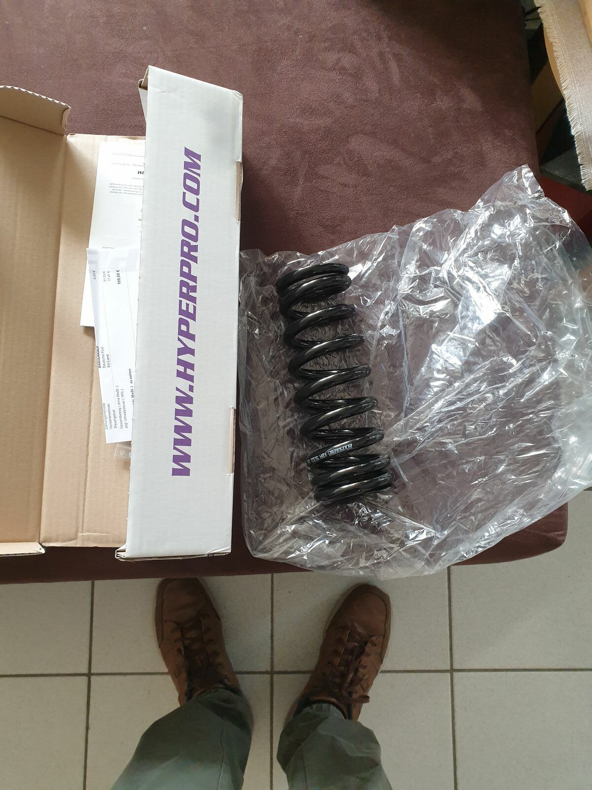 Moin Taurus. Nein , das ist die ganz normale Feder. Gleich lang, und kein Heavy load. Bei Hyperpro ist die Heavyload auch dann gleich 2 cm länger und wäre im Singebetrieb viel zu hart. So hat's mir der Verkäufer jedenfalls erklärt .