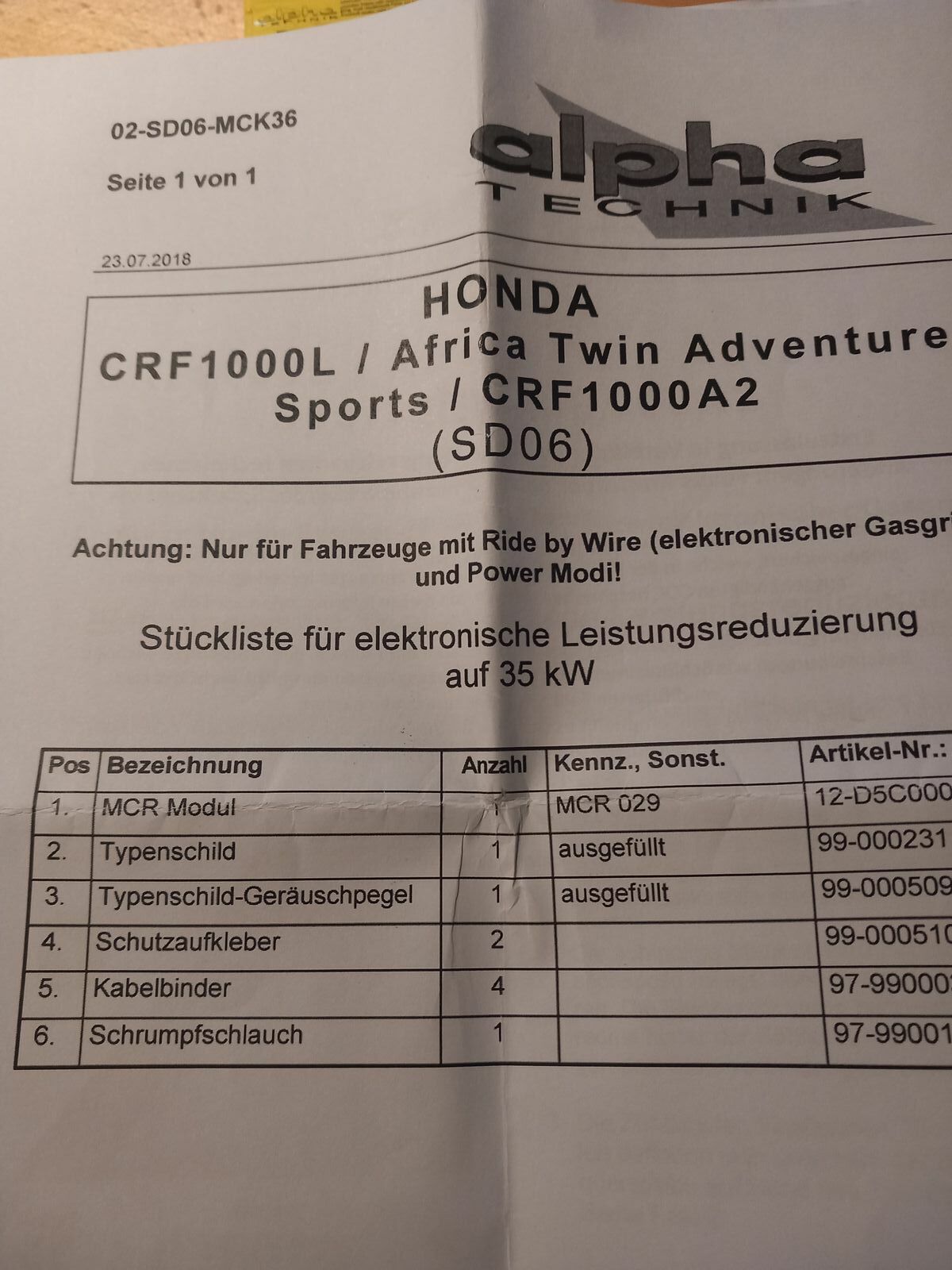 das ist die Drossel TBW für meine SD06 Bj 2018