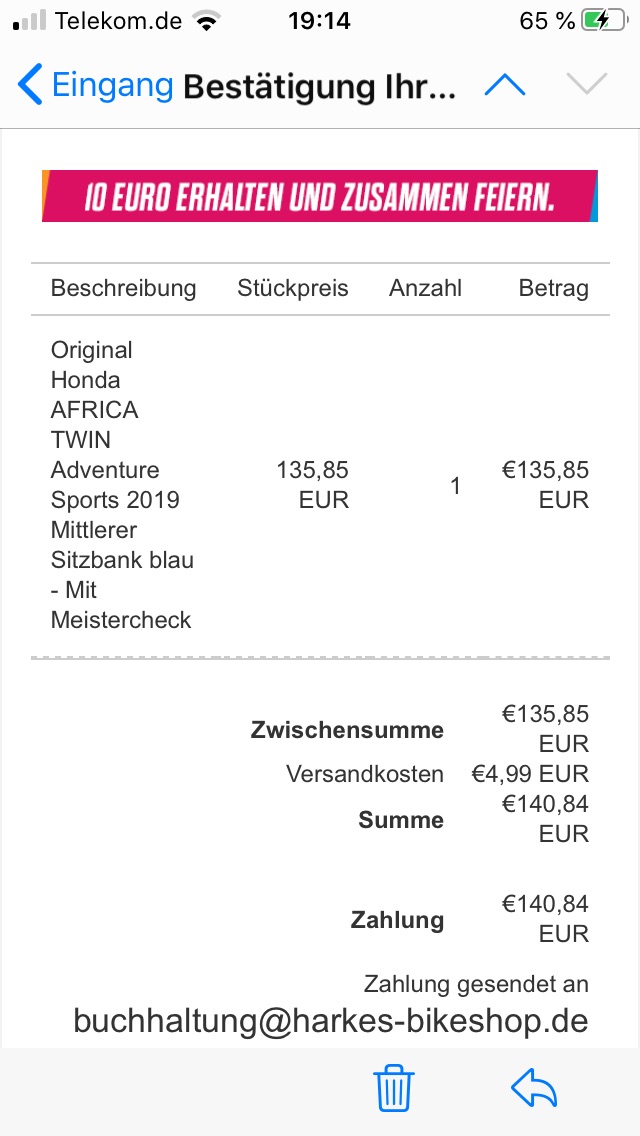 Heute 335 km durchs Münsterland gefahren, auf dem Rückweg meinen Eltern hallo gesagt.War meine erste, längere Fahrt mit meiner ATAS. Sitzposition (mit 191cm) mit der hohen Originalbank sehr gut. Motor, Getriebe, Bremsen top. Verbrauch im gemäßigten Landstrassentempo (75-110 km/h) 4,3 Liter. Ich werde mal einen MRA Vario Spoiler probieren, da mir der Windschutz und die Windgeräusche noch nicht zusagen.