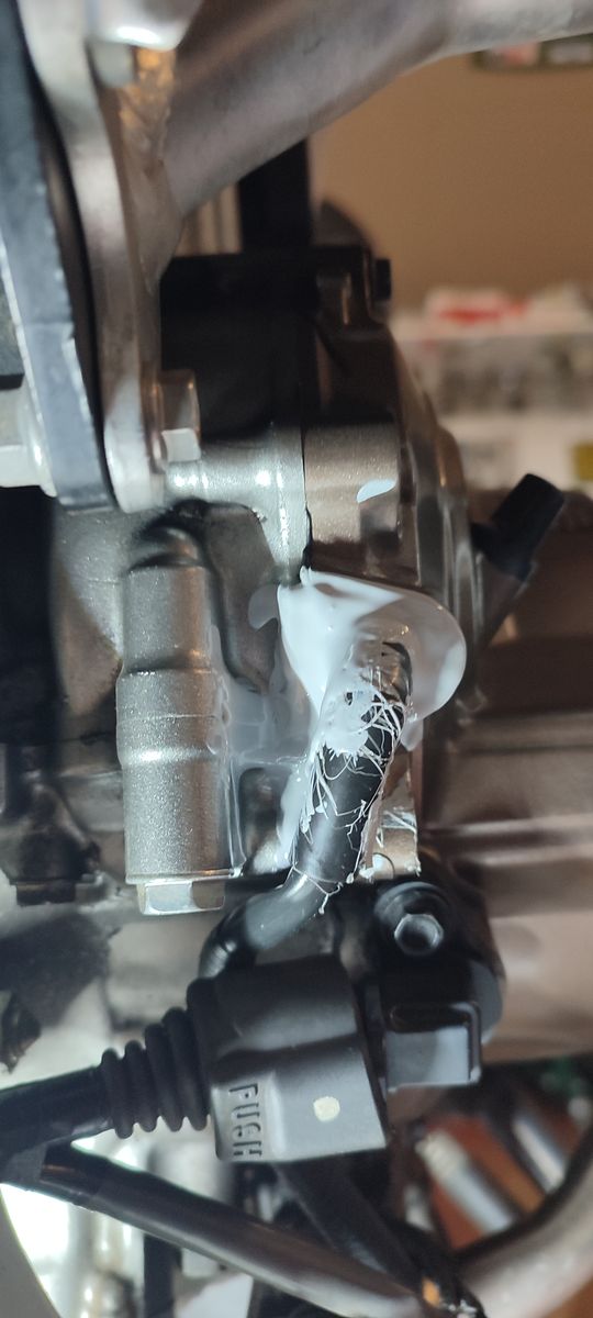 Meine CRF1100 aus '21 zeigte nach 25 000 km jetzt auch ordentlich Ölaustritt am Limakabel, dass sich dann auf der linken Seite über Motordeckel, Seitenständer (und Stiefel) als "Nebel" weiter verteilte. Da ich keine Lust habe, die abstrusen Werkstattpreise zu bezahlen, habe ich es jetzt selbst mit einer Honda-Flüssigdichtmasse versucht. Weil ich den Lima-Deckel nicht abbauen wollte (gerade frischer Ölwechsel), bin ich wie folgt vorgegangen: