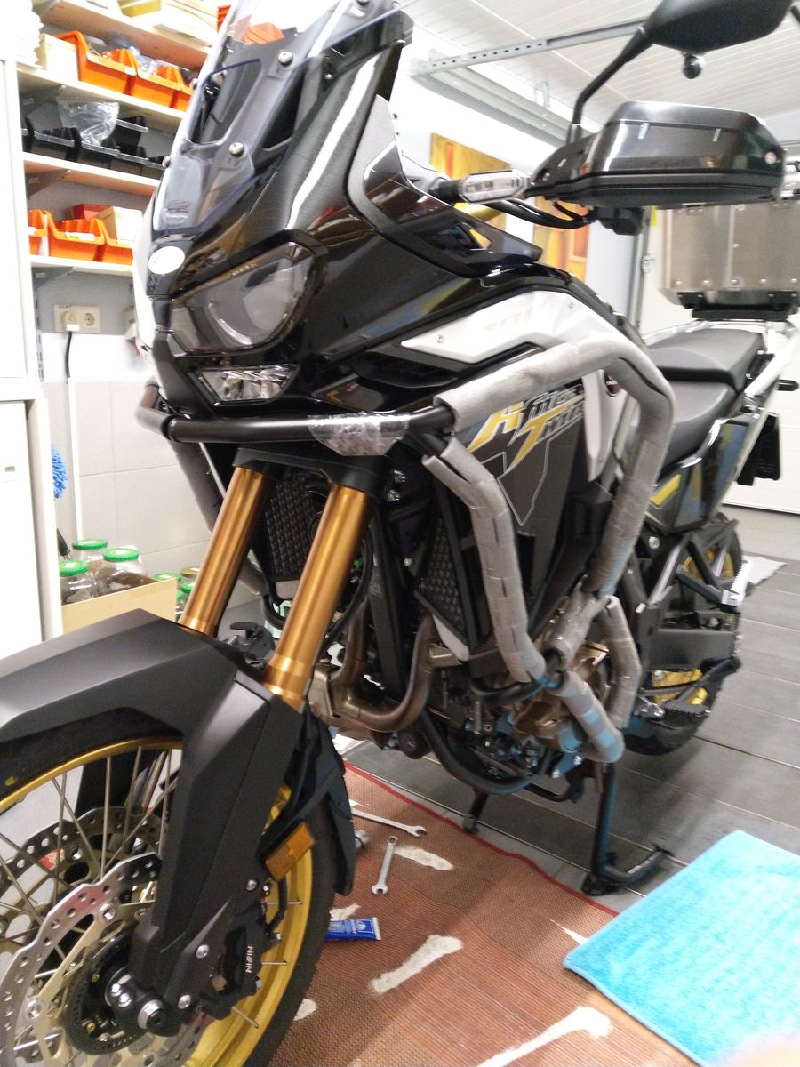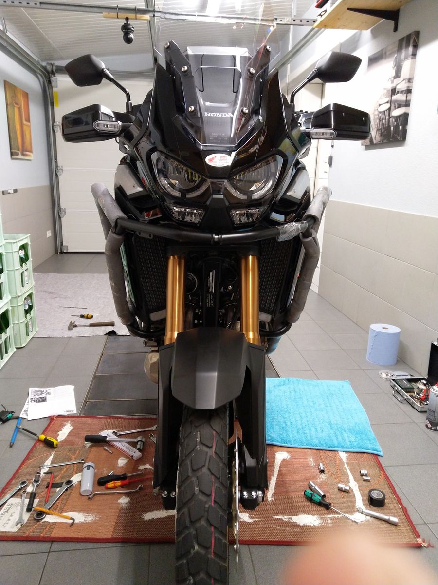 Bei der Montage habe ich überall da wo die Ratsche oder Schlüssel hin und her gedreht wurde mit Isolierband (am Bügel)abgeklebt sonst hat man Kratzer...
