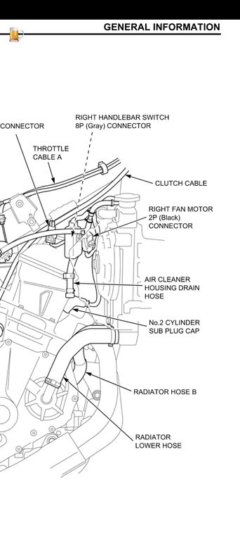 Jetzt zu meinem Problem, leider habe ich es offensichtlich vergessen ein Foto von der Lage der Stecker unter der rechten Seitenverkleidung, oben am Kühler anzufertigen. Die Leitungen sind seeeeehr seeeehr kurz. Kann mir vielleicht jemand die passende Seite aus dem Werkstatthandbuch zur Verfügung stellen? Oder ein Foto aus dem die korrekte Lage hervorgeht? Ich kann fast erahnen welche Kommentare ich jetzt Gefahr laufe zu bekommen, aber das Risiko gehe ich ein.