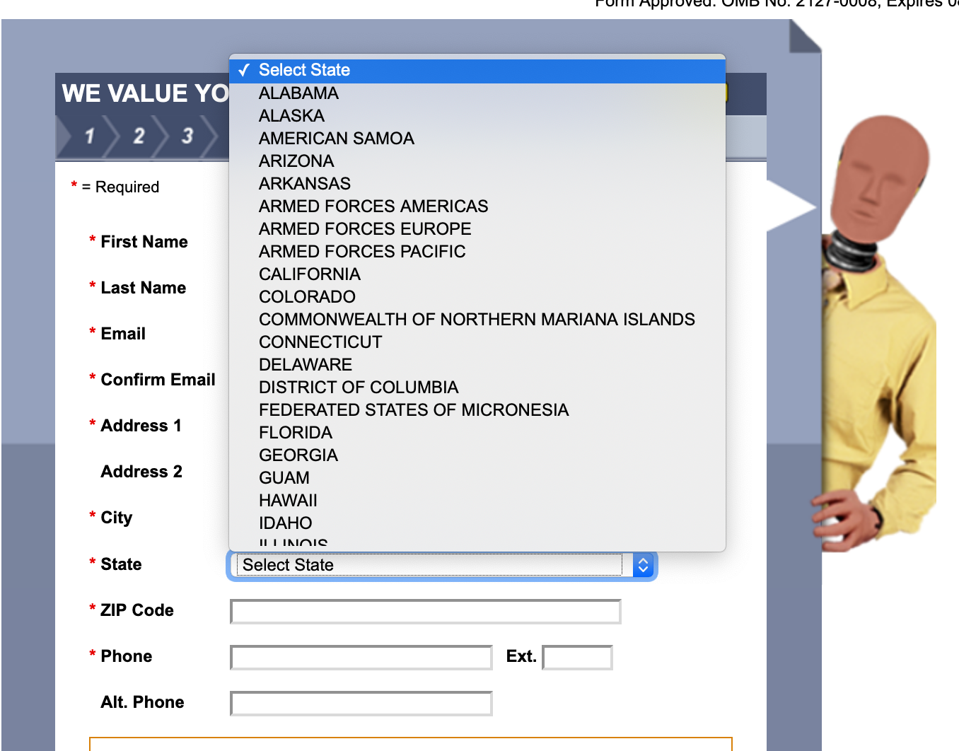 Wird nicht akzeptiert ....Ich denke, diese Seite ist nicht für Europäer gemacht. Selbst wenn man seine Daten eingibt per Hand, kommt als "State Auswahl" nur the U.S.