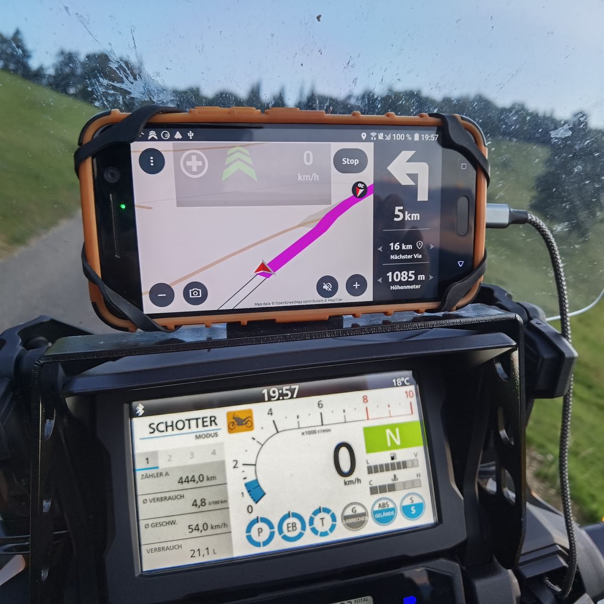Auch mein altes HTC 10 mit Calimoto und Blitzer.de PLUS bleibe ich definitiv bei dieser Wahl, auch wenn es nur mit einem GRID-Gummi am Halter gehalten wird. Aber es ist so elastisch, dass es mit schwingt und so fest, dass es selbst bei diesen Straßenzuständen immer gehalten hat ... Für mich PERFEKT ![]()