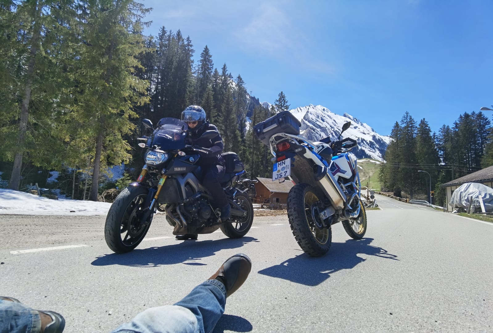 Über Burgdorf nach Chrüzhöchi, dann über Sörenberg nach Sarnen .... dann war das dieses Verbotsschild "Panoramastrasse gesperrt" und schon hatten wir 1h Delay. Weiter ging es über den Glaubenbergpass, der seit dem 6. Mai "Gott sei Dank" offen hatte ...Danach zur Tanke (ich wollte dem Daniel ja keinen dreckigen Mistbock hinstellen) schön waschen, warten bis eine glänzende AT ums Eck schoss und uns der Fahrer freundlich winkte ...