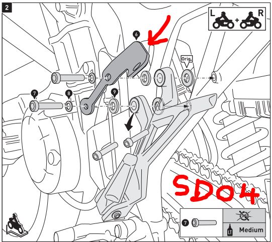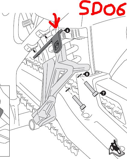 Mir geht es speziell um den SW Motech Evo-Träger. Bis auf die vorderen Befestigungslaschen würde das Teil weiter an der SD06 funktionieren. An der SD04 werden die Seitenlaschen ja seitlich mit den Soziusrasten verschraubt - bei der SD06 unterhalb des Rahmens zusammen mit den Soziusrasten.
