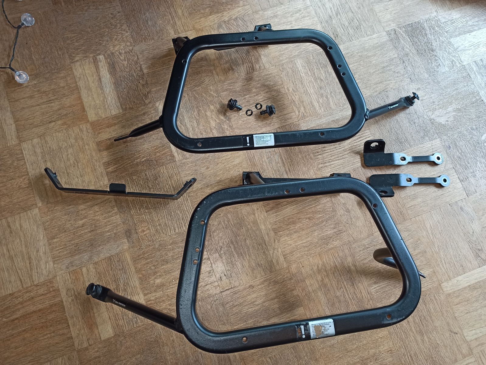 Hab die Träger nochmal drangehalten. Der vordere Ausleger des rechten Seitenträgers kollidiert mit den Soziusrasten. Sich da irgendwas zu schweissen, würde also nur wenig Sinn machen. Daher biete ich die Kofferträger jetzt hier im Marktplatz zum Tausch an.