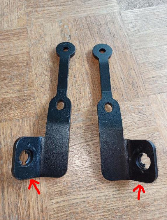 Der Verkäufer hat mir neben der Problematik, dass das System nicht an meine SD06 passt auch verschwiegen, dass die QuickLock-Aufnahmen an den Seitenlaschen (das sind die kleinen Dinger, die an die Soziusrasten geschraubt werden) ausgelutscht sind (Pfeile in den Bildern) und die QuickLock-Schrauben nicht mehr funktionieren. Hier kann man einfach normale Schrauben einsetzen und hätte so gleichzeitig etwas mehr Diebstahlschutz oder ihr besorgt euch neue Haltelaschen bei SW Motech.