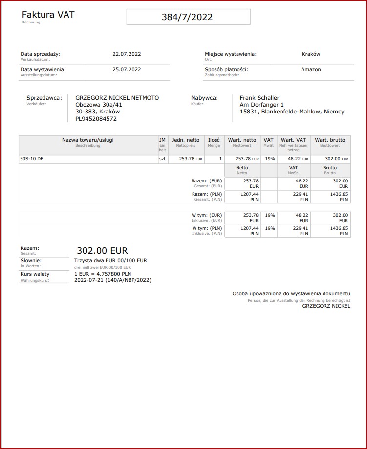 Ich habe mir am 22.07.2022 ein