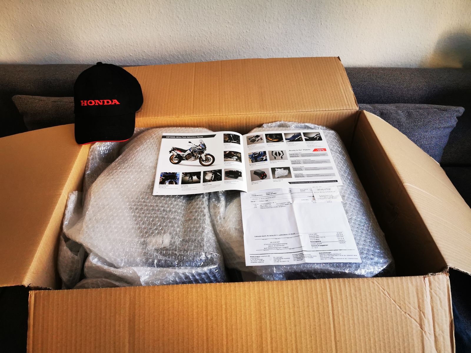 biete hier meine originalen, neuen HONDA Koffer an. Habe sie wegen den Fotos erstmalig ausgepakt. Sie passen für die HONDA CRF 1000 Africa Twin Baujahr 2018/19. Ich hatte sie mir letzten Sommer gekauft (734,50 € original Rechnung vom HONDA Händler liegt vor), da ich nicht wusste, ob meine originalen Honda Touratech Alu-Kofferträger mit meinem neu erworbenen GIVI Topcaseträger zusammenpassen (siehe letztes Foto). Da diese Kombination jetzt funktioniert, verkaufe ich dieses Kofferset (rechts/links), das letzte Saison übrigens ausverkauft war. Festpreis 699 € plus 16,50 € versicherter Versand über deutschenPost DHL. Kein Notverkauf. Die Kofferschlösser könnt Ihr dann bei Eurem freundlichen Honda-Händler auf Euren Zündschlüssel einstellen lassen. Bevorzugte Abholung in Ingolstadt nach Zahlungseingang. Privatverkauf, kein Umtausch, keine Rückgabe. Tierfreier Nichtraucherhaushalt. Kein Verkauf/Versand ins Ausland, sorry.