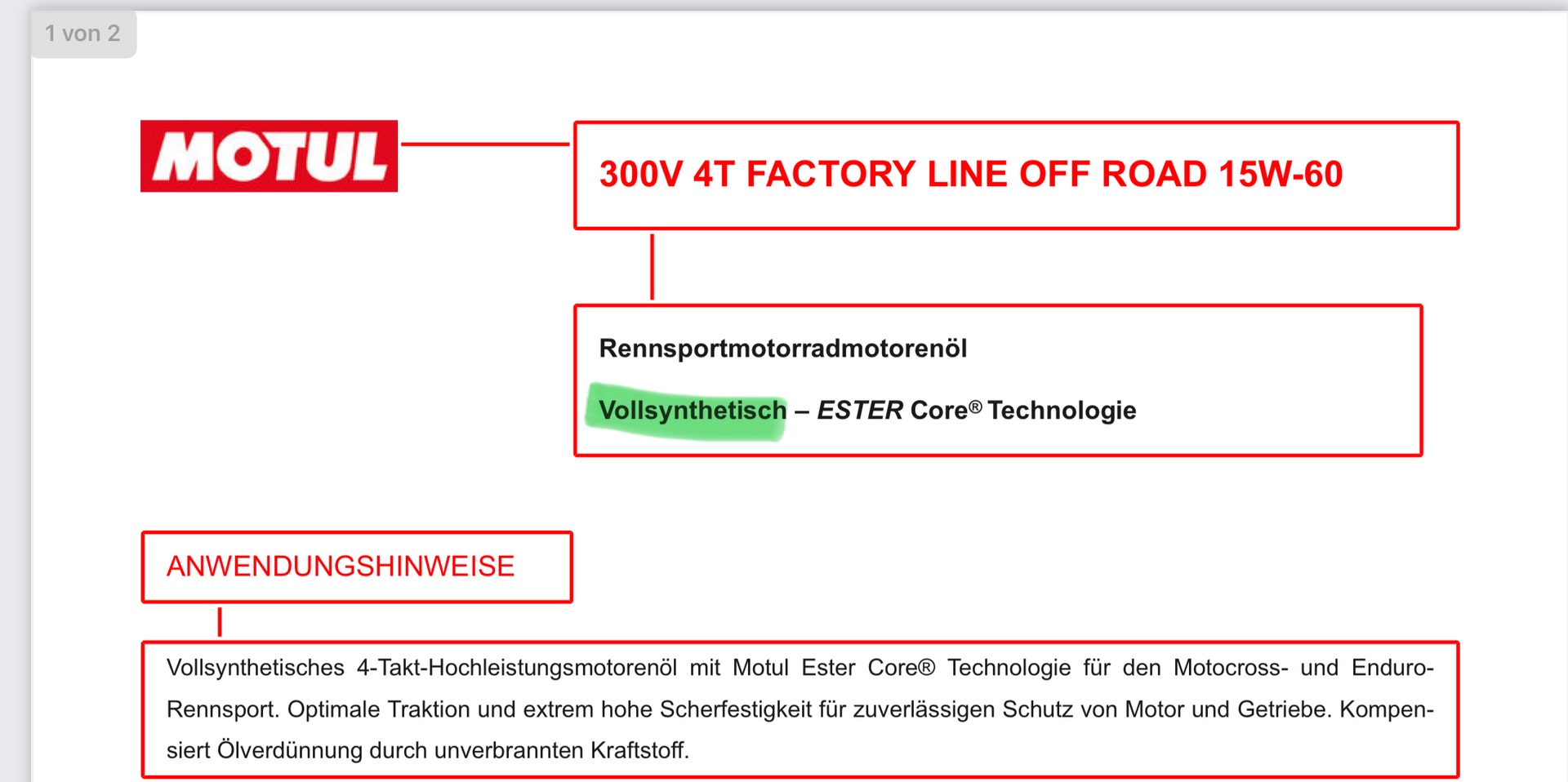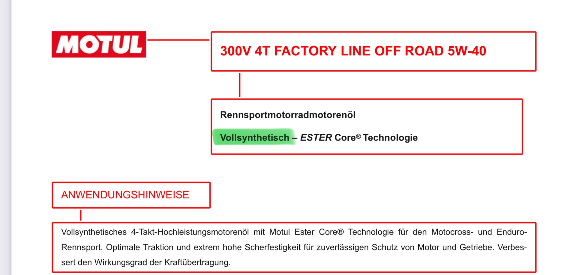 PS. Ich muss mich korrigieren: Motul hat mittlerweile doch vollsynthetische V300 Ölsorten, aber nicht alle, was eigentlich komisch ist, die Ester Core Technologie ist ja die „gleiche“. Vor einiger Zeit habe ich mal alle V300 Viskositäten angeschaut und bei allen war die Bezeichnung „vollsynthetisch“ verschwunden.