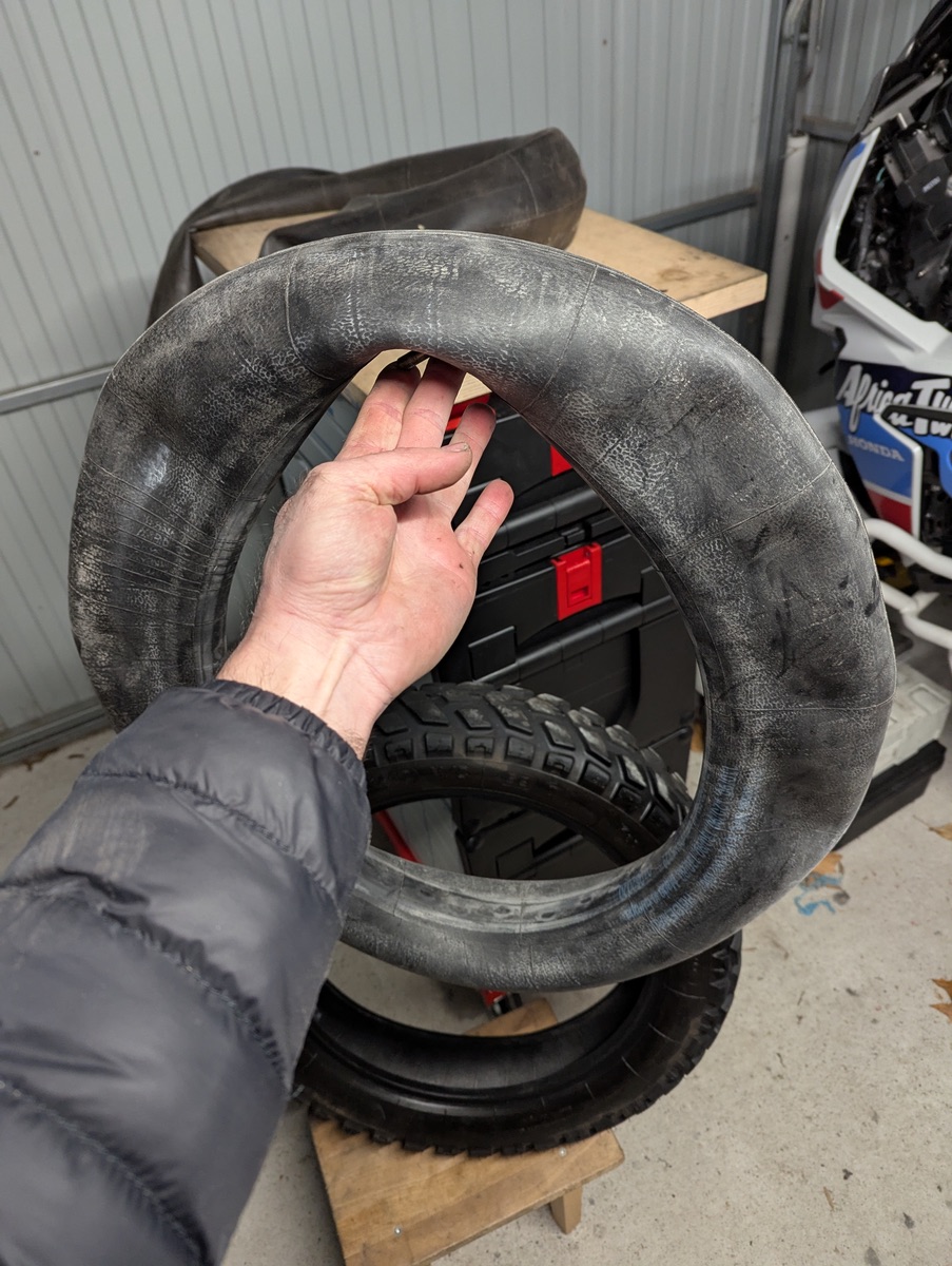 Es gibt übrigens nicht nur Nägel und Schrauben als Pannenverursacher. Scharfe Steinkanten z.B. können auch Einiges einrichten und dabei nicht unbedingt drinnen stecken bleiben. So ein dickwandiger Schlauch wäre da auch von Vorteil. Sowie in dem Fall wie auf dem Bild oben wenn ein Fremdkörper im Reifen steckt, nicht direkt zur Undichtigkeiten führt, aber über den längeren Zeitraum sich in die Oberfläche des Schlauchs einmassieren kann.