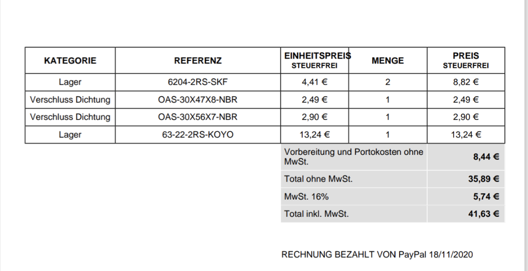 Ich sammel mir die Sachen gerade zusammen. Ich bin mal wieder schockiert, dass ich in Japan mit dem Standard-Versand bei ca. 87€ (zzgl. Steuer und Zoll dann etwa 110€; mit dem langsamen Seefracht-Versand etwas unter 100€ gesamt) lande, während die selben Teile bei bike-parts-honda 230,37€ plus Versand kosten würden. Deutsche Honda-Ersatzteilpreise sind echt absurd.