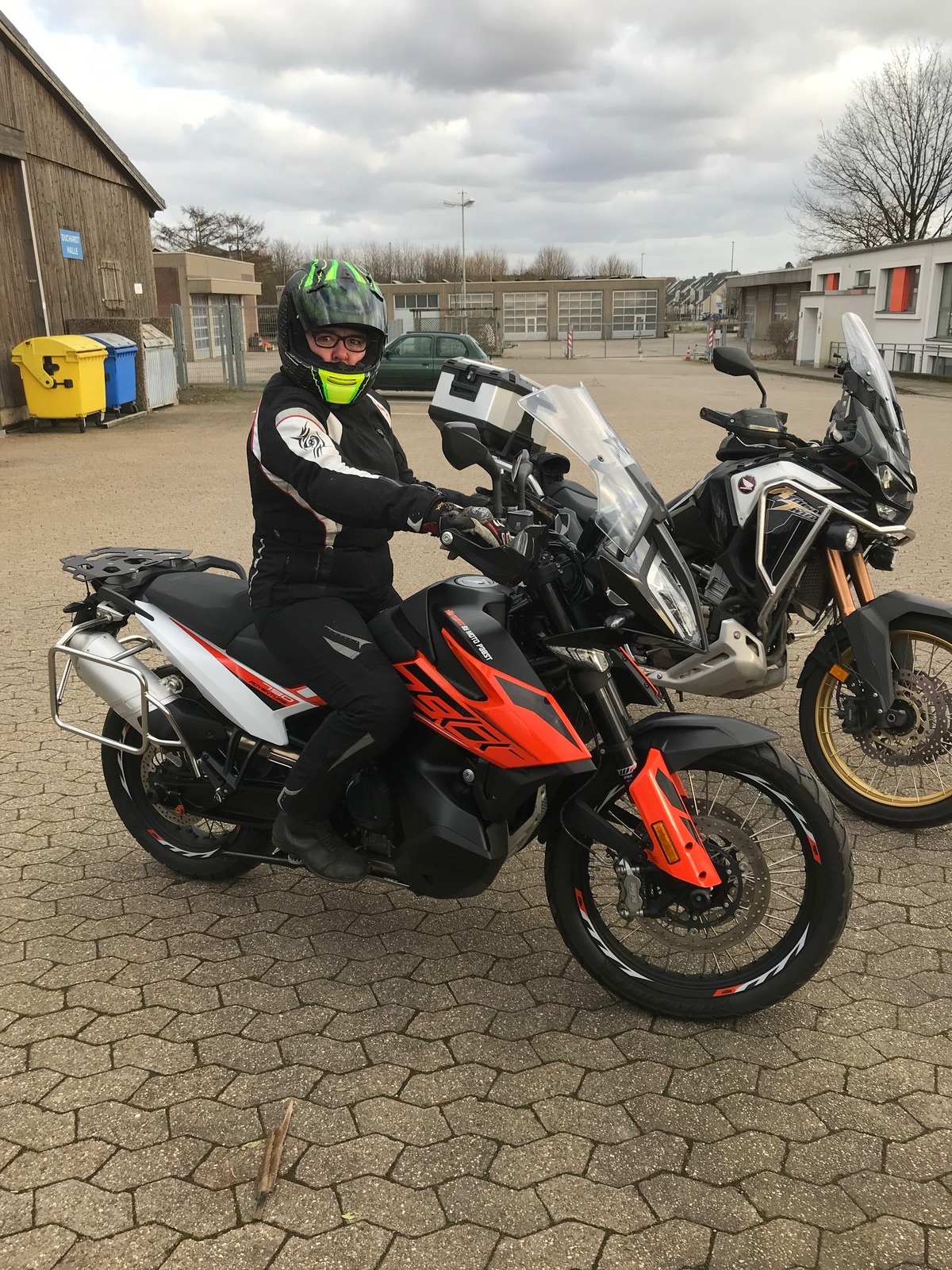 Das alte Moped, eine Triumph 955i ca. 260 kg. war zu schwer. Nun eine KTM 790 Adventure 190kg. zugelegt.
