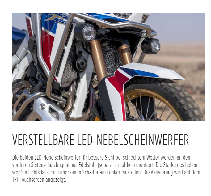 Meinem Bruder seine 1200 GS ADV Modell 2016 wurde 4 Monate nach Auslieferung von BMW nach Drohung mit Rechtsanwalt gewandelt, da diese einfach während des Fahrens nicht nachvollziehbar ausging. BMW konnte das Problem nicht lösen.ESA (Fahrwerk) der 1250 gegenüber der 1200 verchlechtert. Nur noch im harten Modus (Dynamic) ohne aufschaukeln in Kurven fahrbar. Das Honda EERA Fahrwerk ist ein Traum. Wind + Wetterschutz sind bei warmen Temperaturen auf der Honda wesentlich angenehmer, da schwitzt Du schon mal auf der BMW wie Sau.