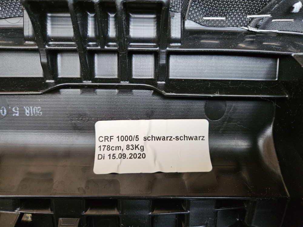 Auf der Unterseite gibt es Gebrauchsspuren an der Haltenase, sind aber normal, denke ich.83 Kilo Fahrergewicht ohne Ausrüstung und 178cm Körpergröße habe ich bei der Bestellung angegeben, dürfte aber nur ein Richtwert sein.