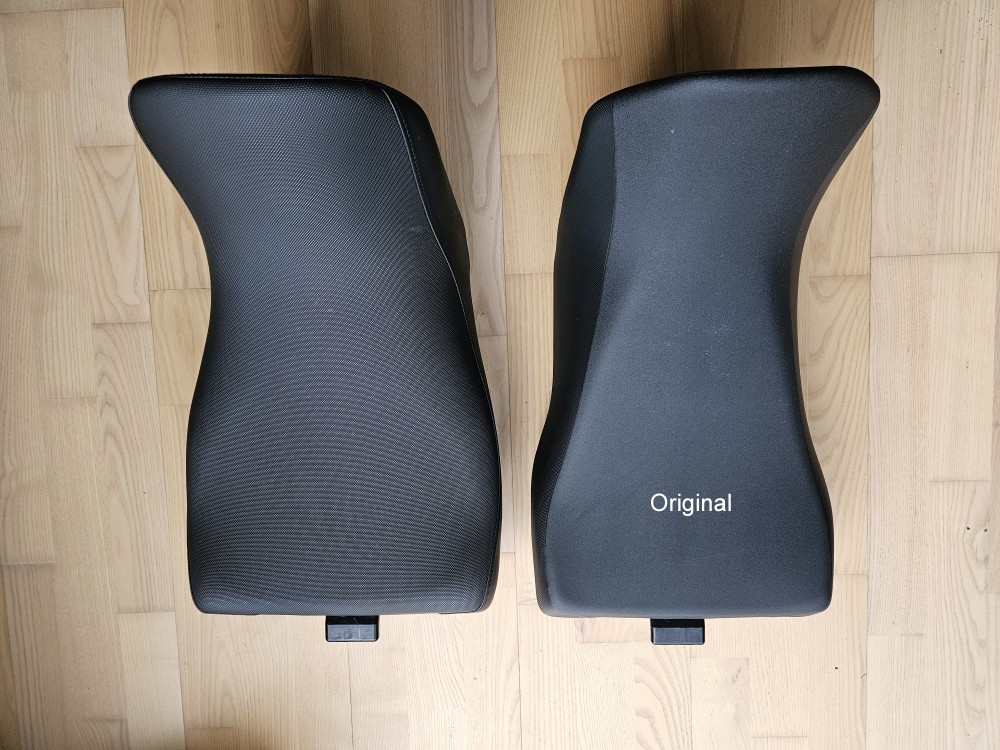 Ich glaube, sie ist genau so hoch wie die originale Sitzbank, aber mit einer breiteren Sitzfläche und etwas härterem Polster.