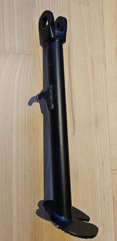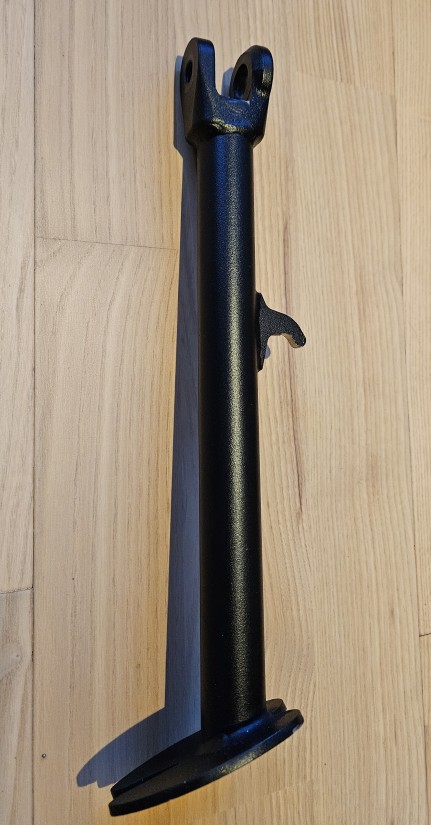 Er dient als Ersatz für das originale Teil aus Aluguss und ist so stabil, dass man sich auch bei dauerndem Aufsteigen über den Seitenständer keine Gedanken machen muss. Außerdem ist die Auflage unten so groß, dass man bei weichem Boden nicht einsinkt.