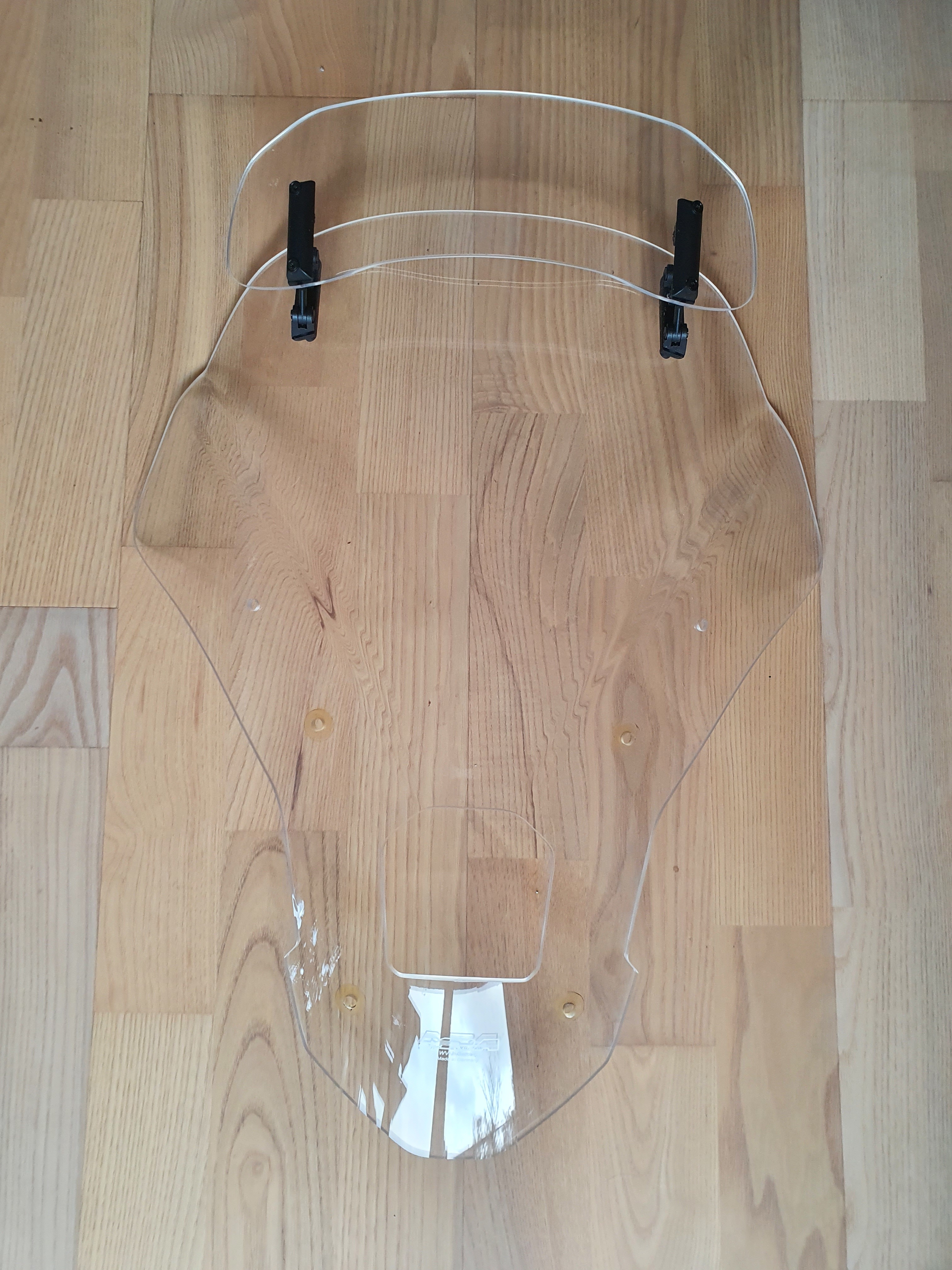 Die Scheibe ist klar, mit einstellbarem Spoiler, mit ABE, gereinigt (leichte Restspuren von Insekten können dran sein) und insgesamt in einem sehr guten Zustand (kann nur wenige tkm montiert gewesen sein).