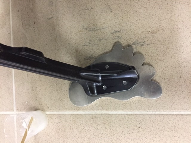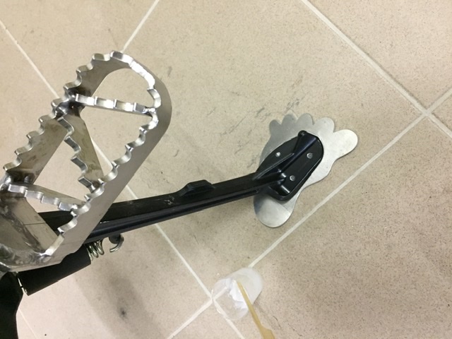 Moin habt da auch noch eine Idee, habe mir diesen aus 10mm Alu gebaut dran geklebt und verschraubt, habe die kontakt Fläche 3mm tief ausgefräst in der Standbohrmaschine, ein Loch 5mm durch den Ständerfuß gebohrt, Gewinde in die neue Standplatte geschnitten, Alcon10 aufgetragen und dann verschraubt, die Schraube ist auf dem Bild wo Sie auf dem Seitenständer steht zusehen, Alcon 10 ist ein Aufschäumender Kleber aus der Katusche, nach Aushärtung schleif und lackierbar, Achtung klebt wie Sau und wird Bomben hart: