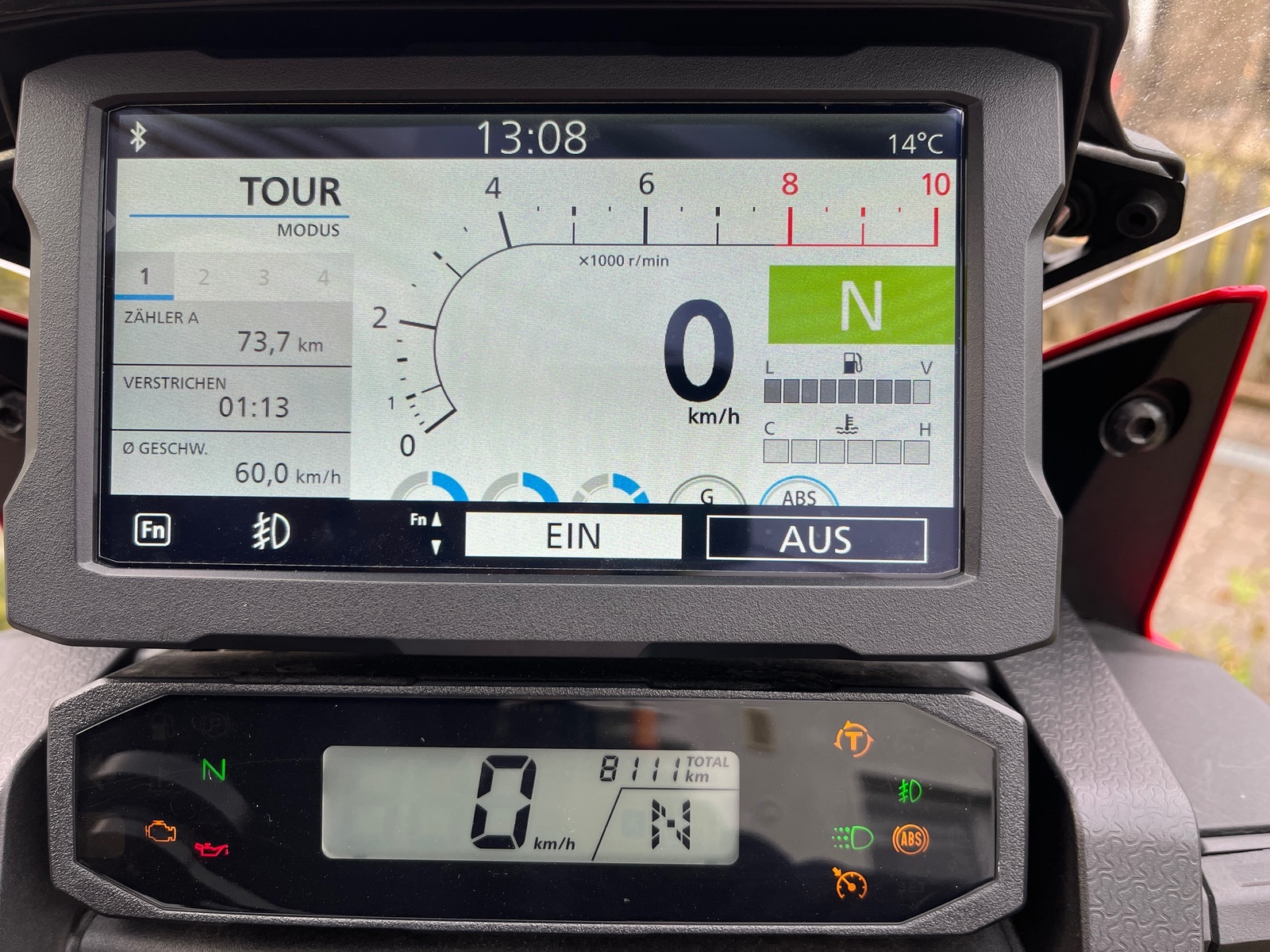 Seltsam… mit Zündung war alles i.O. Dann mit Motor waren die Nebler aus, obwohl sie im Menü auf „ein“ waren. Dann eine Runde ums Haus, immer noch aus. Dann in der Garage noch ein paar mal probiert und nun bleiben sie an 🤷🏼♂️