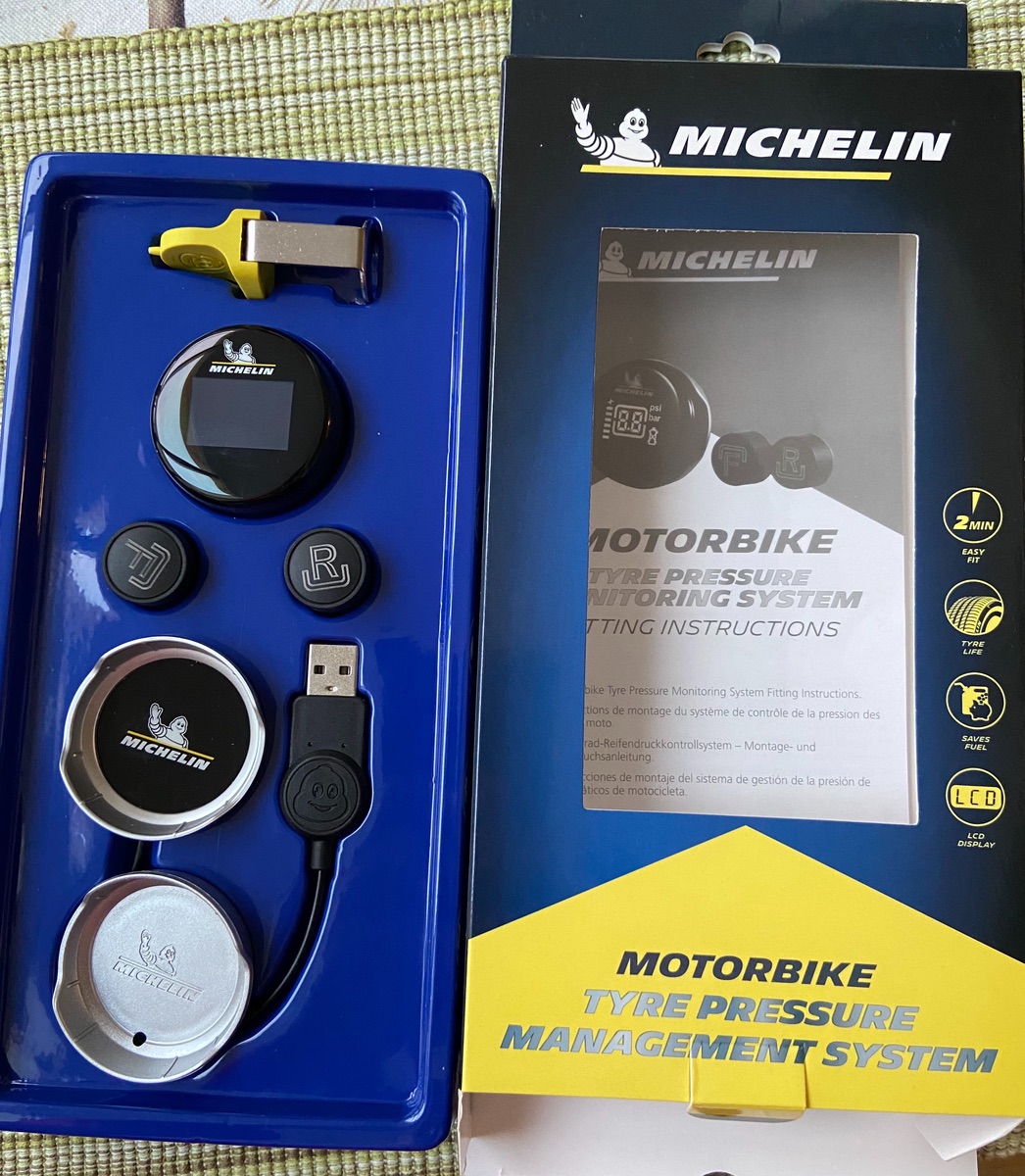 U.a. ein TPMS von Michelin. Das billige vom großen Onlinehändler habe ich zurück gesendet, da der Sensor vorne undicht war (eigentlich paradox bei so einem Gerät 🤪)