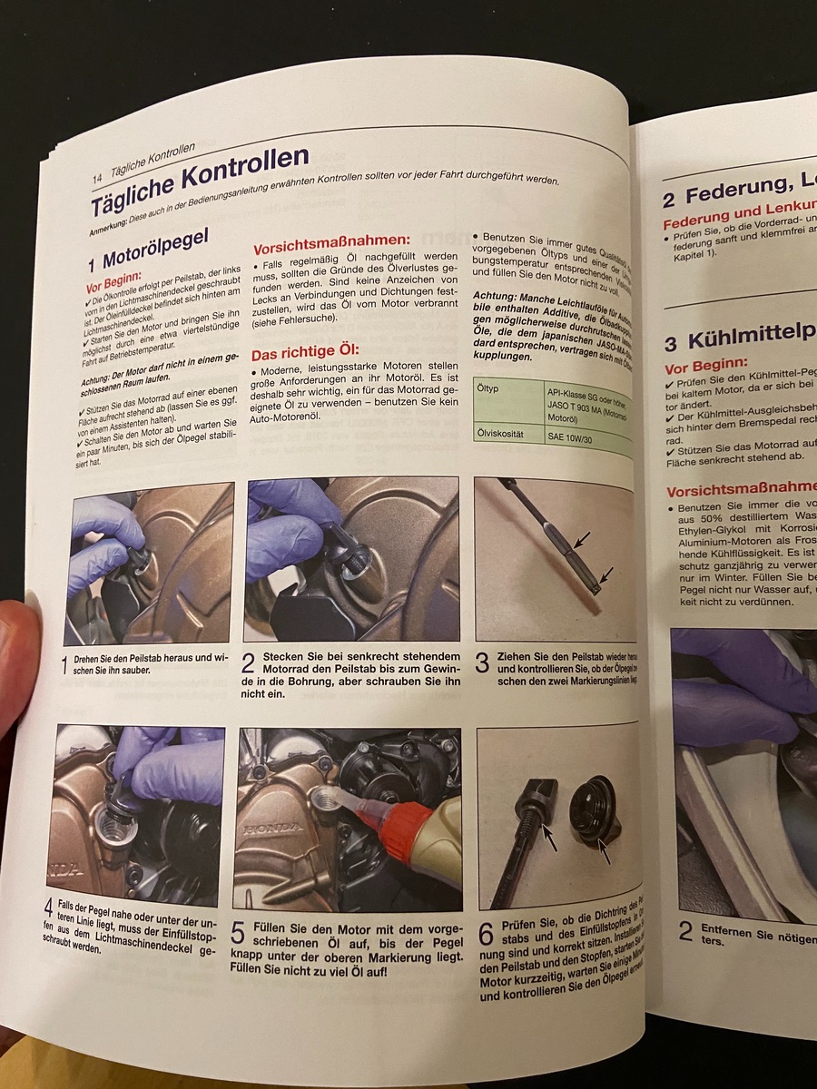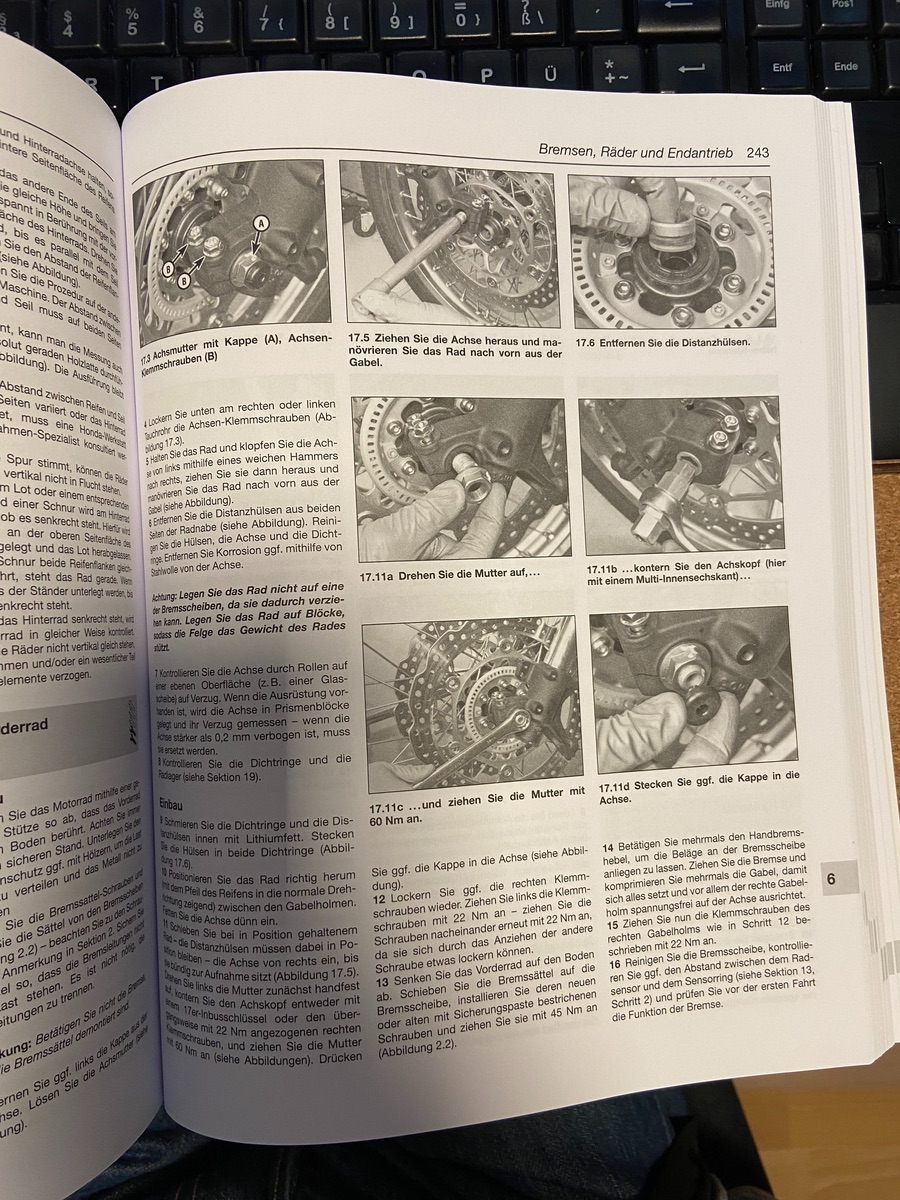 Ich teste es morgen mal beim Reifenwechsel, den ich bei meinem Kumpel in der Werkstatt mache. Er hat auch das original Werkstatthandbuch und dann kann ich mal vergleichen. Ich finde auch die Einleitung mit der Honda Geschichte interessant, halt was für Liebhaber und Schrauber.