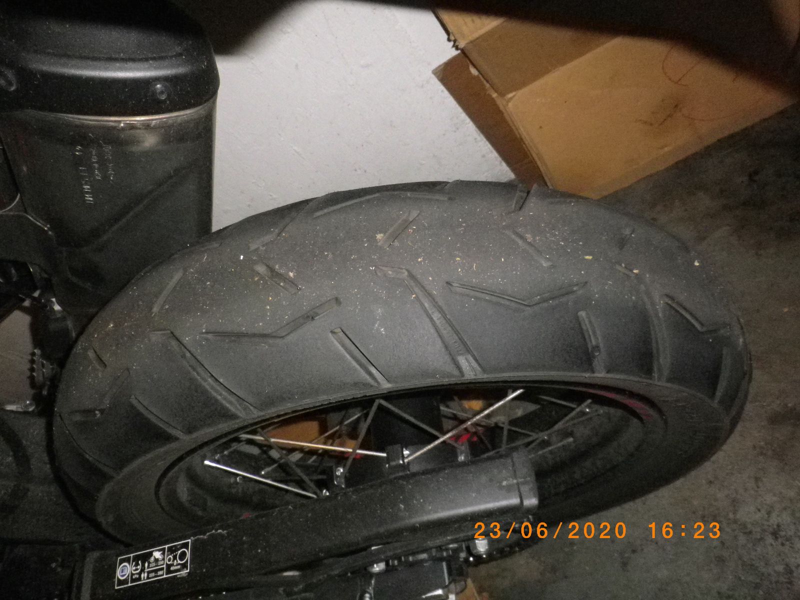 Reifen sieht noch gut aus, auch wenn man ihm inzwischen ansieht, daß er schon etwas geleistet hat.