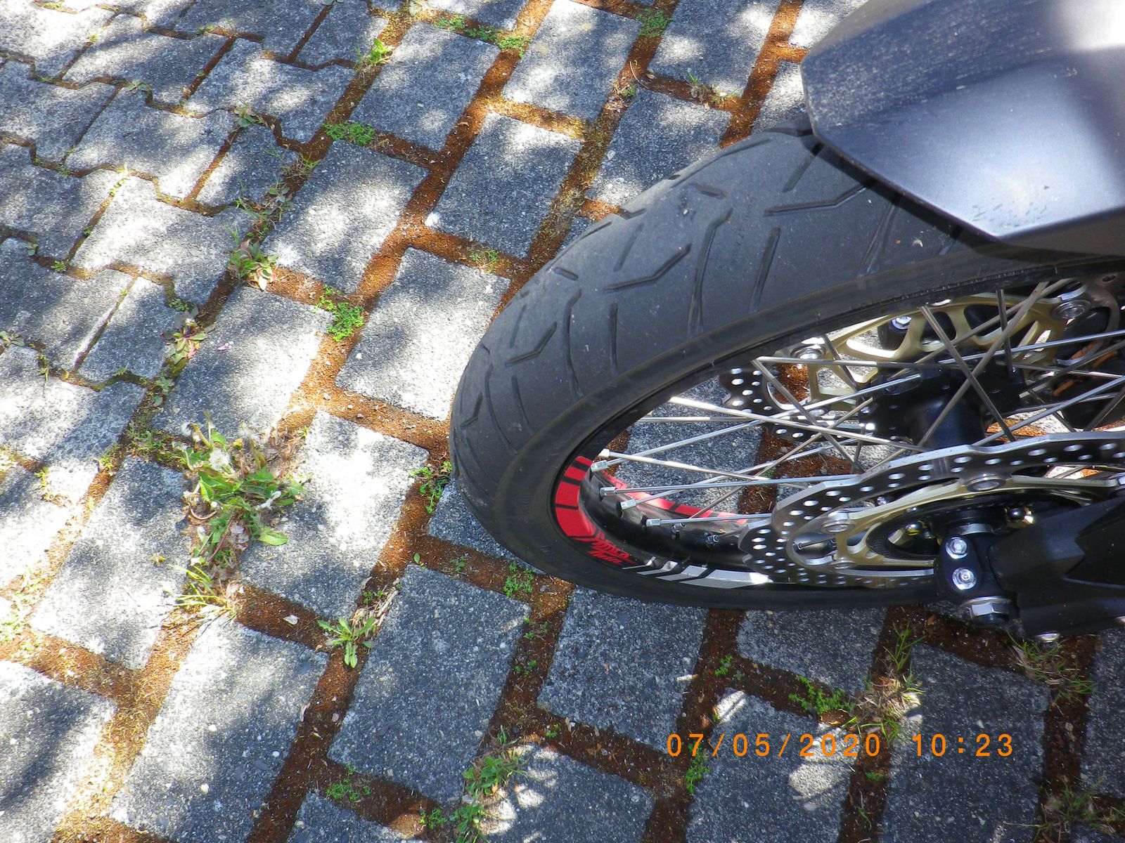 Der VR-Reifen wird schräglagentechnisch nicht so belastet wie der hinten, das werde ich ändern.