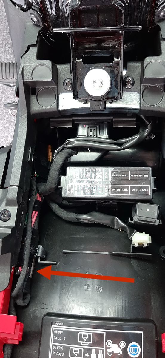 Das Kabel zum Navi habe ich ohne den Tank abzunehmen unter der schwarzen