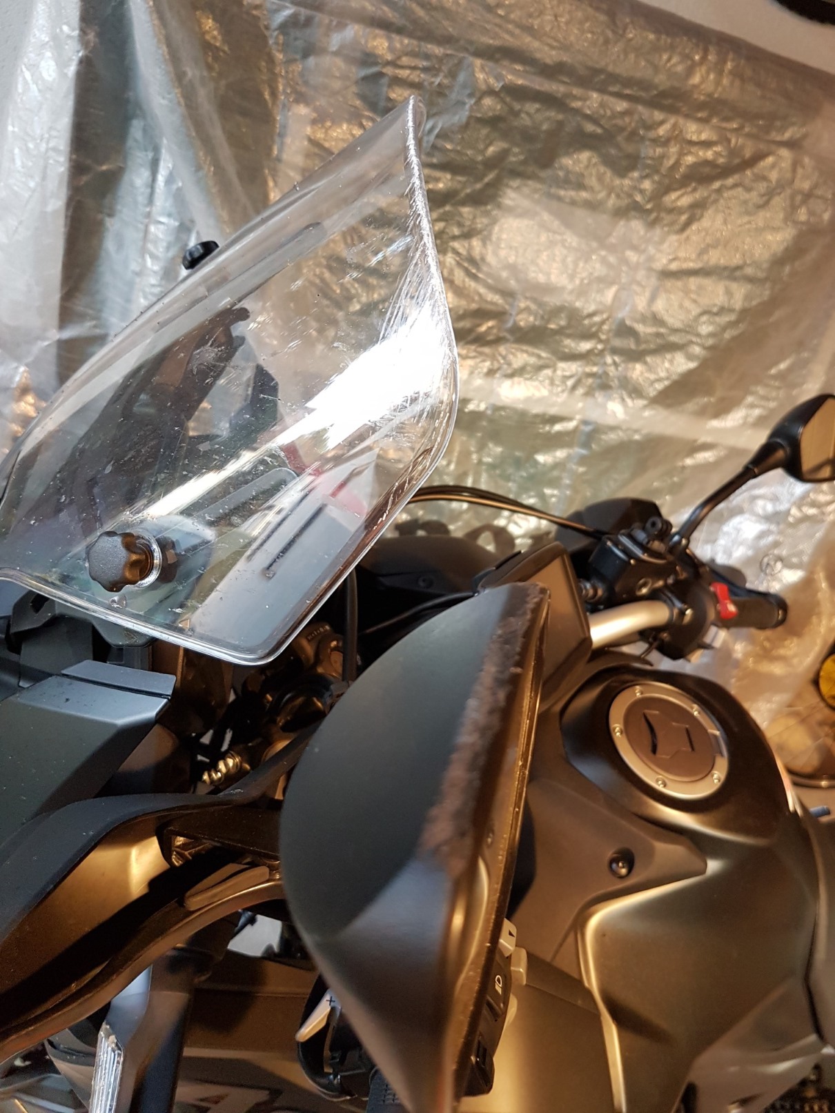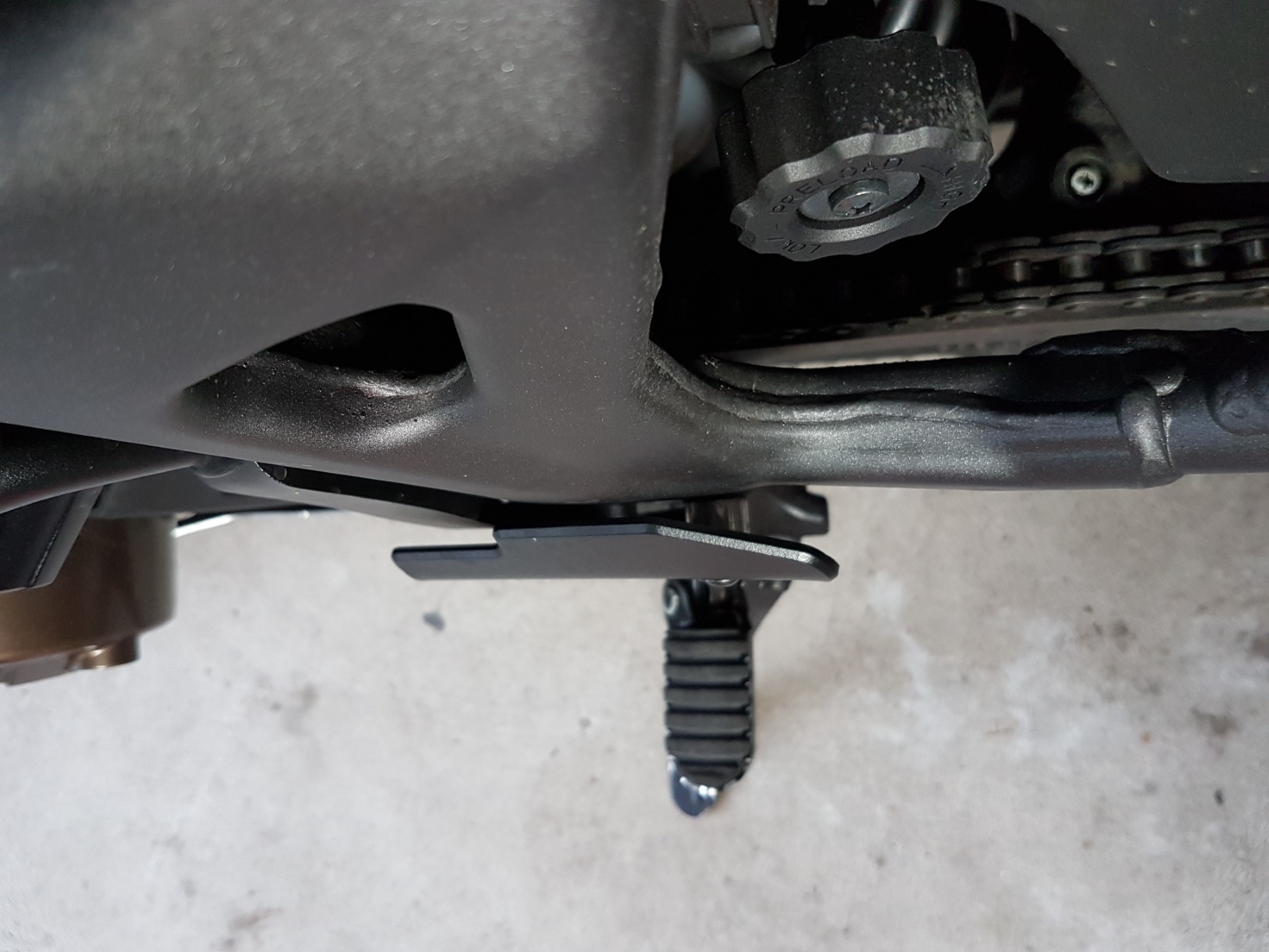 Ich hab mal ein Bild von der Abdeckung gemacht. Ein Freund (er fährt selber Motorrad) war heute zu Besuch und hat sich gleich mal drauf gesetzt, um es zu testen. Und er ist auch prompt hängengeblieben.