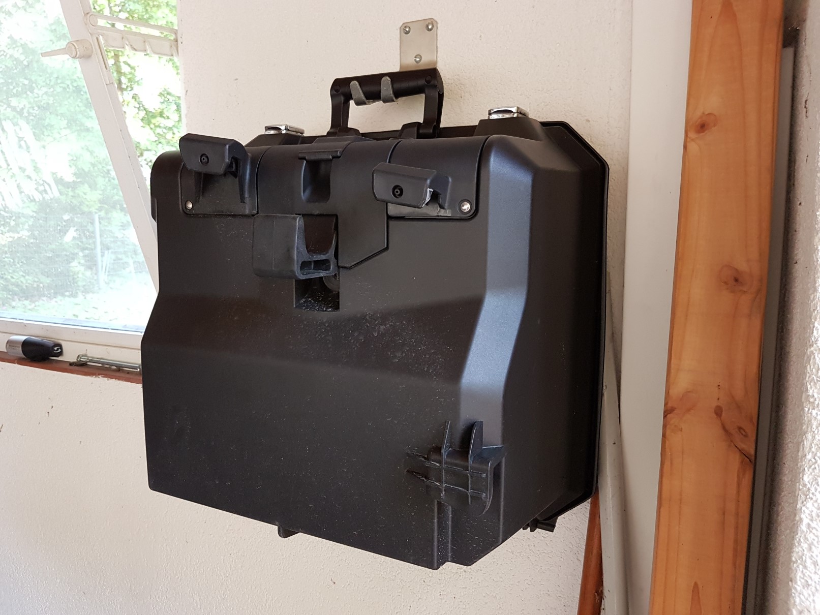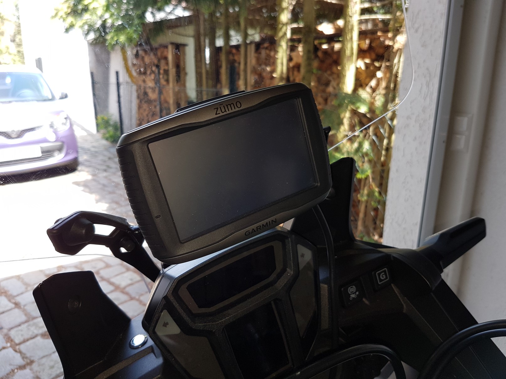 Da ich sowieso schon Werkzeug in der Hand hatte, habe ich den Zumo jetzt nach oben an die Scheibe verlagert.