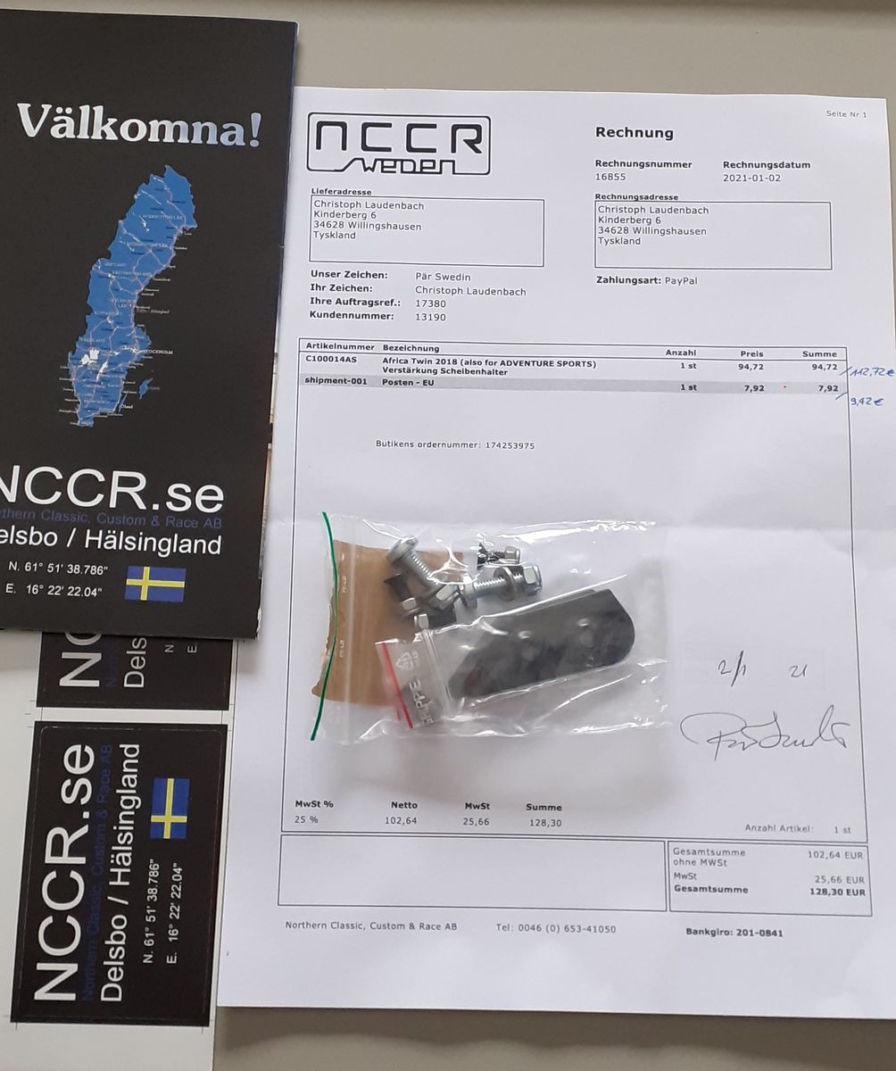 187cm / ATAS / Standardsitz oben / Puig Racing Scheibe / Arai MX-V / Swegotech Forkshield / trotz Helmschirm kein Flattern/Wummern, leichter, gleichmäßiger Winddruck,