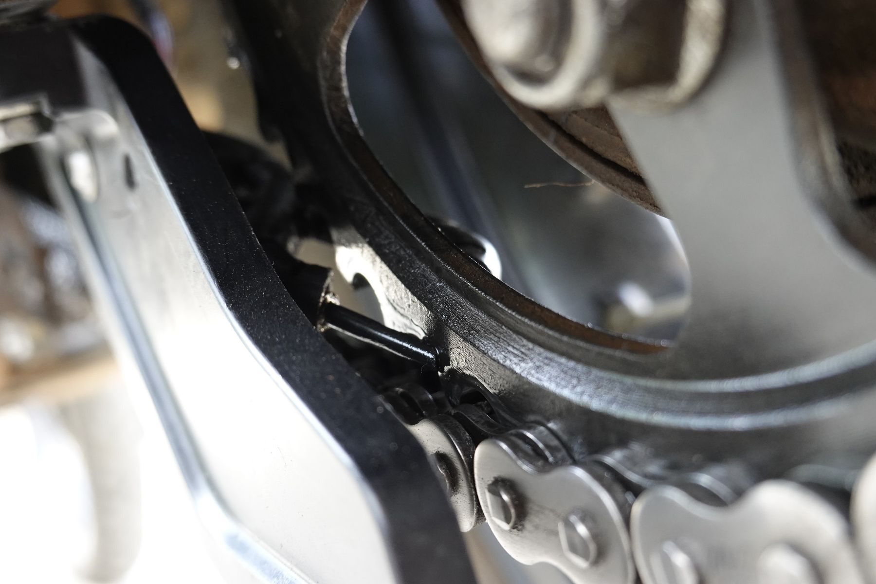 Hier noch eine paar Bilder wie ich es jetzt gelöst habe. Muss allerdings noch das testen auf einer längeren Fahrt. Ich habe der Scorpion an dem Kettenschutz befestigt.