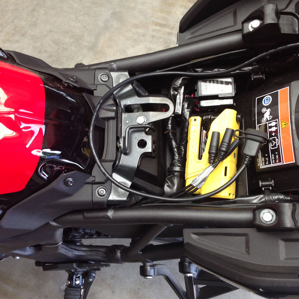 Im Prinzip mündet das Kabelbündel direkt unter dem Tank her links unter den Sitzbereich.