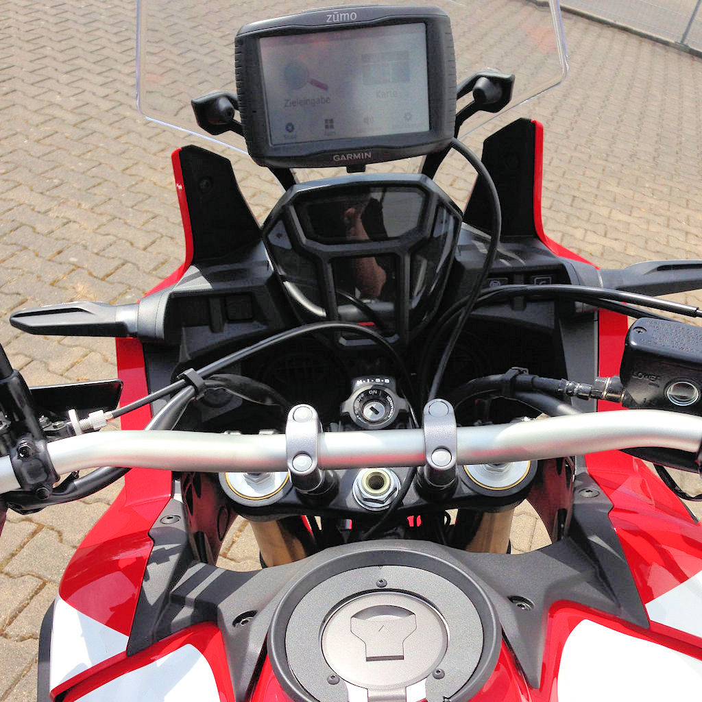 Wie zu erkennen mittig durch die Lagerung/Lenker und dann hab ich mich an den Strang vom li. Lenkerende gehangen.