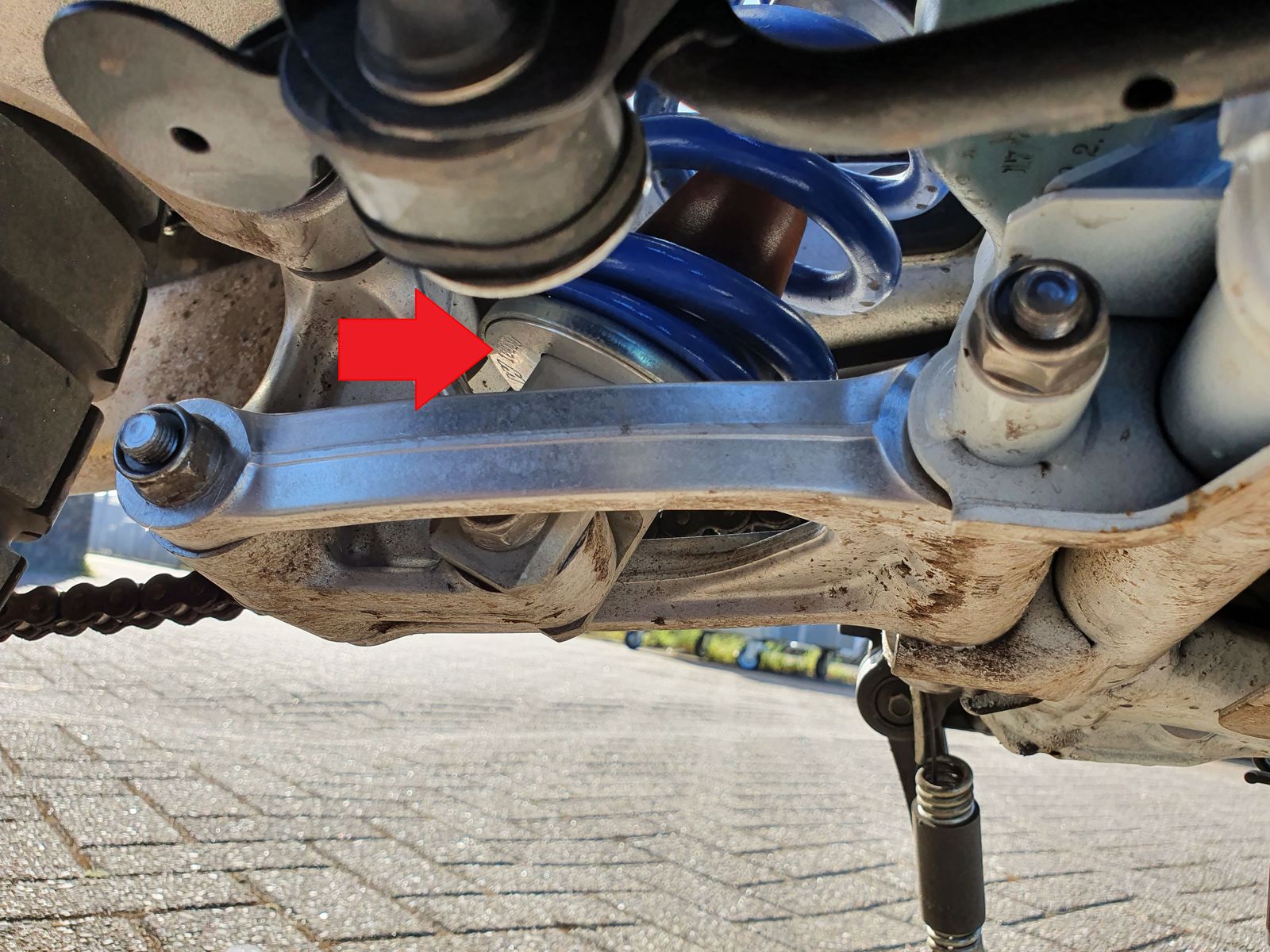 Weitere Untersuchungen ergaben, dass der oben genannte Teil sich noch am Dämpfer befindet. In Foto 1 ruht es auf der Aluminiumfederplatte (= Tieferlegungssatz). Die Original-Federplatte ist auf Foto 2 zu sehen und besteht aus zwei Teilen, die nicht bei Honda bestellt werden können. Ich rief den Händler an, der das Kit montiert hat und der bestätigen konnte, dass nur der volle Dämpfer bestellt werden kann. Glück im Unglück. Er hatte noch ein gebrauchtes Set, das ich übernehmen kann