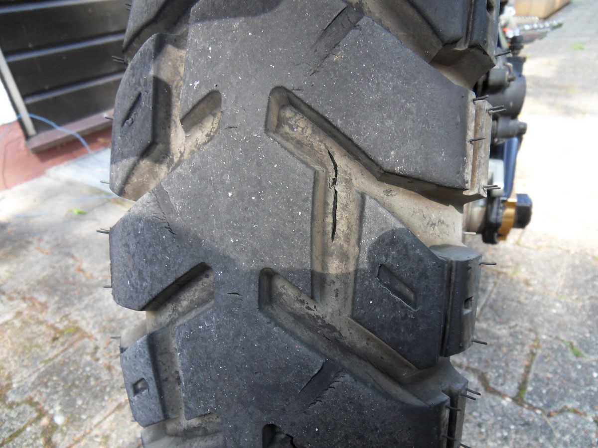 Alles anzeigen..................... Mitas E08 Roadking, welcher nach wenigen tausend km ebenfalls diese Risse aufwies. (am Vorderreifen der XRV)